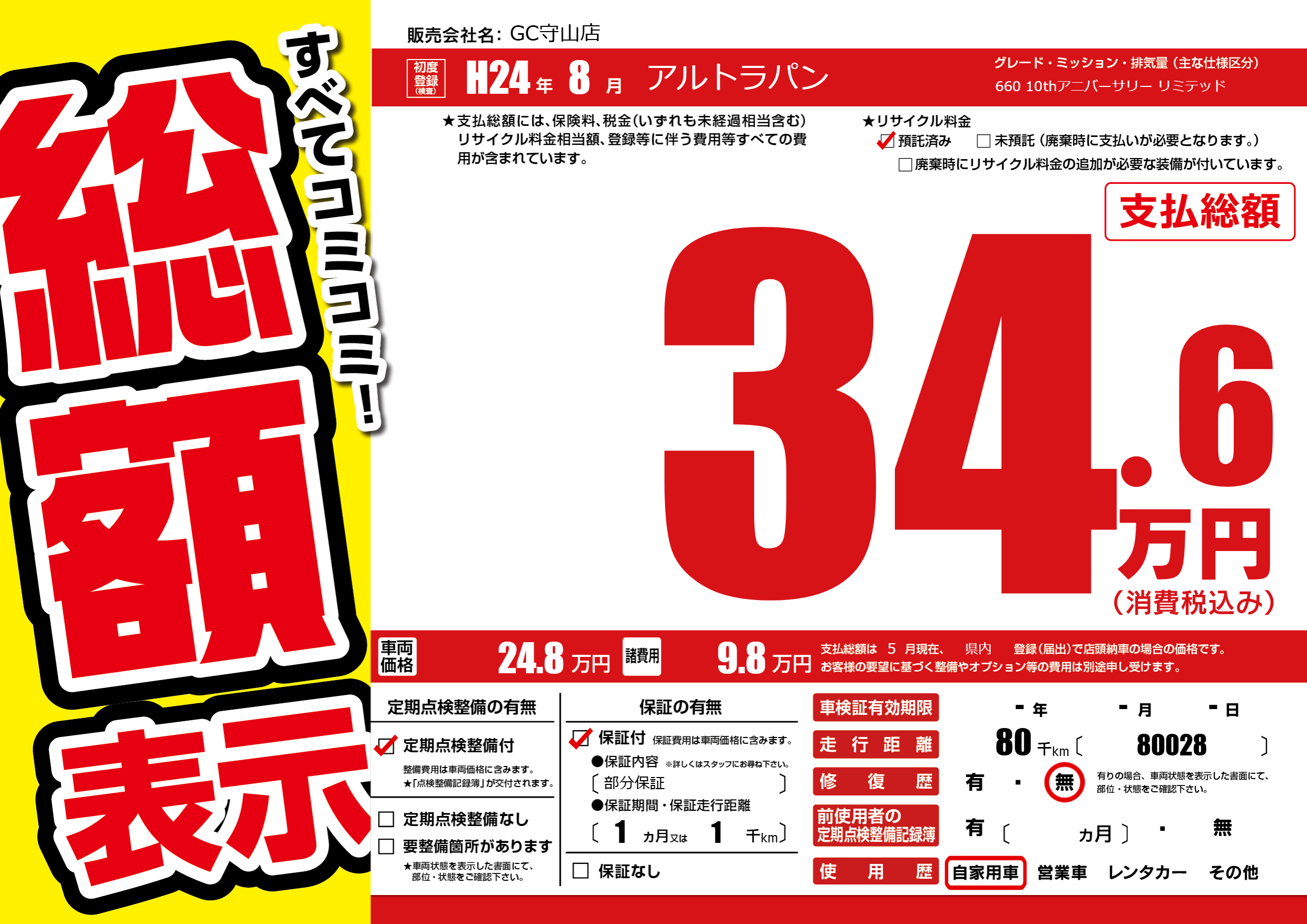 | 車名 | アルトラパン | グレード ミッション 排気量 |