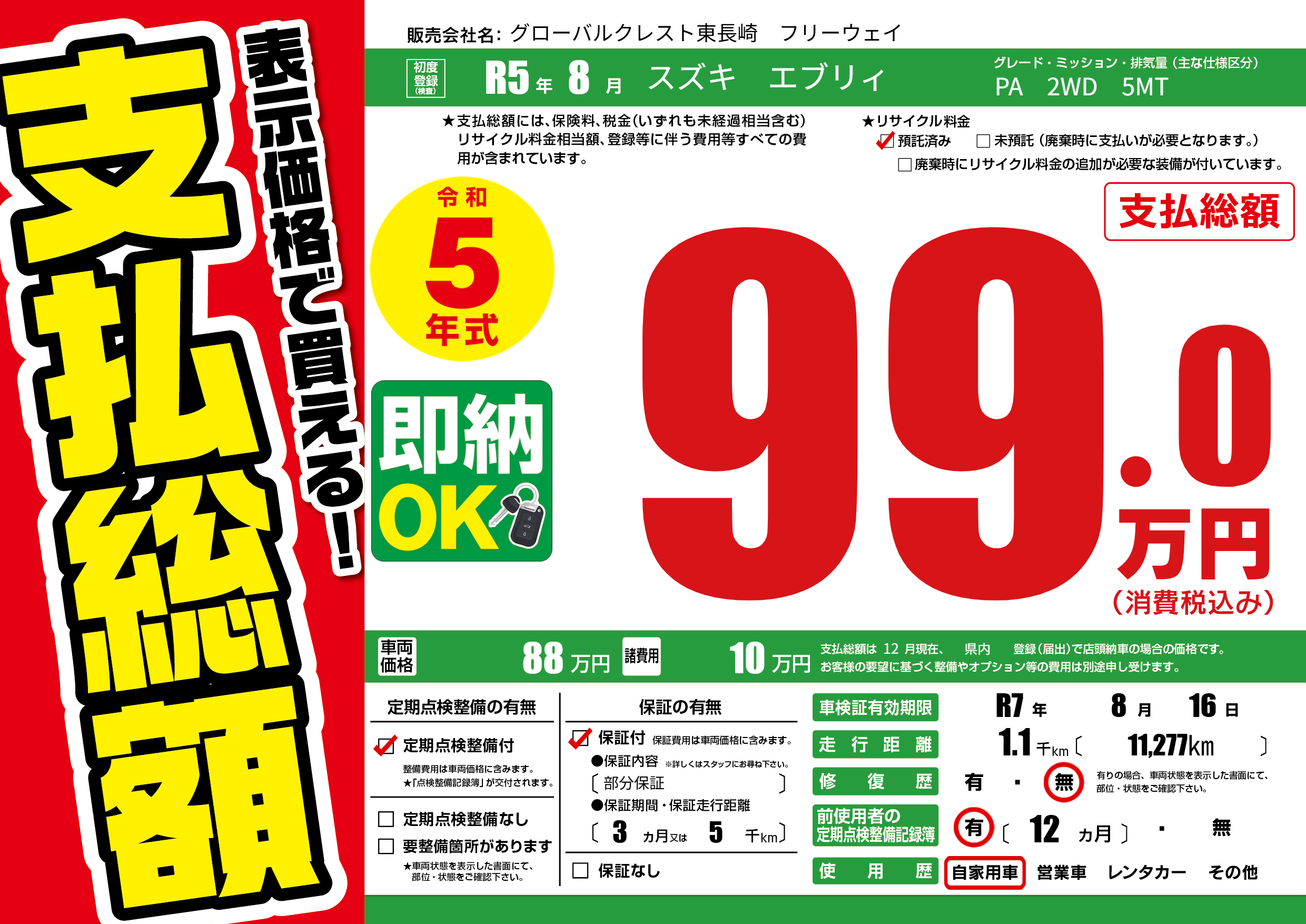 | 車検制限 | R7年 8月 16日 | ||