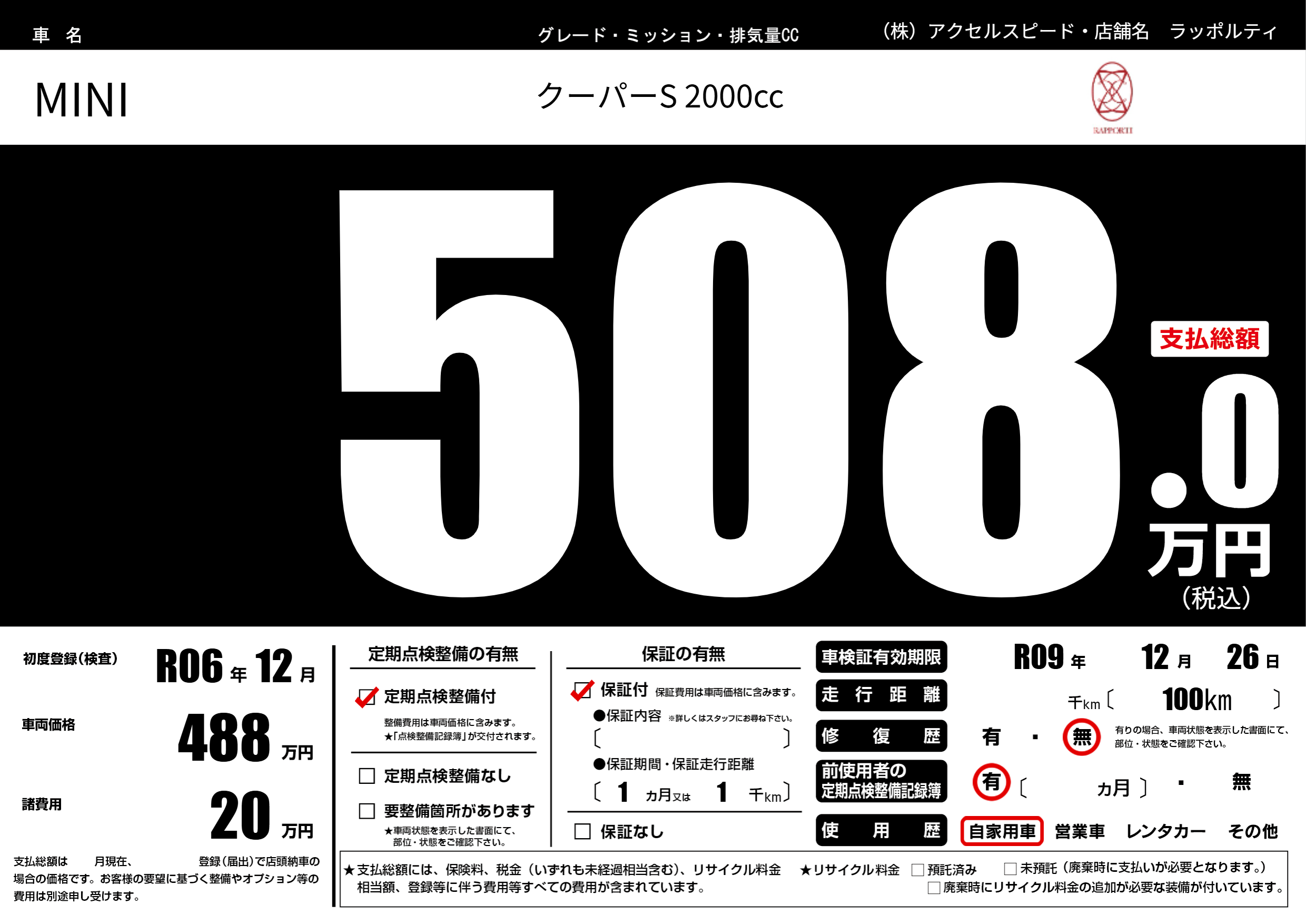 | 走行キロ | - | 初年度登録 | R06年12月 |