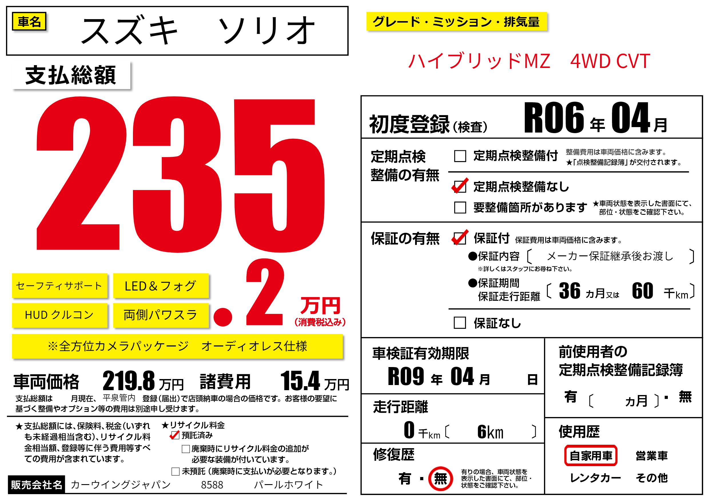 | 走行キロ | - | 初年度登録 | R06年04月 |