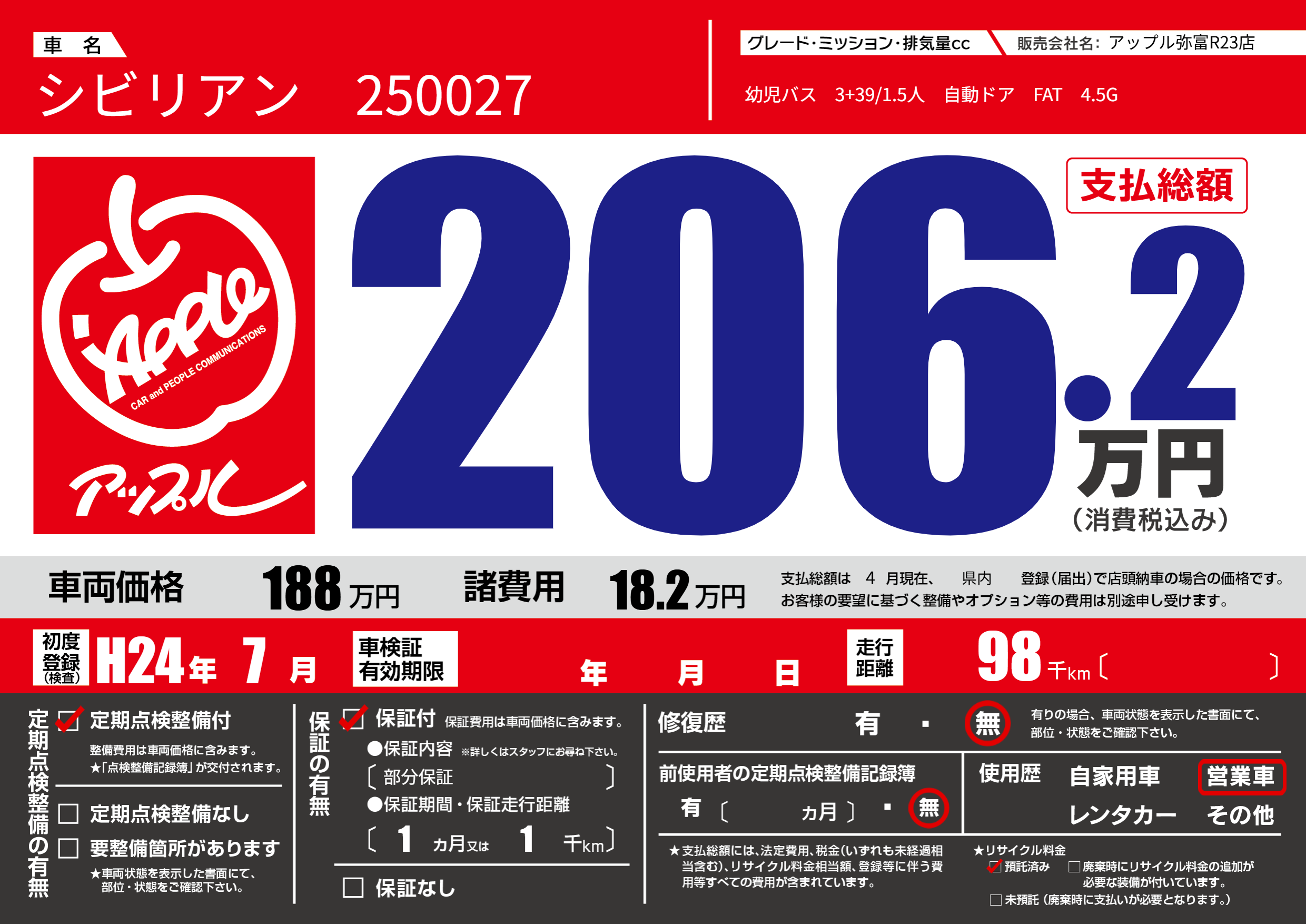| 定期点検整備 | 定期点検整備あり | ||