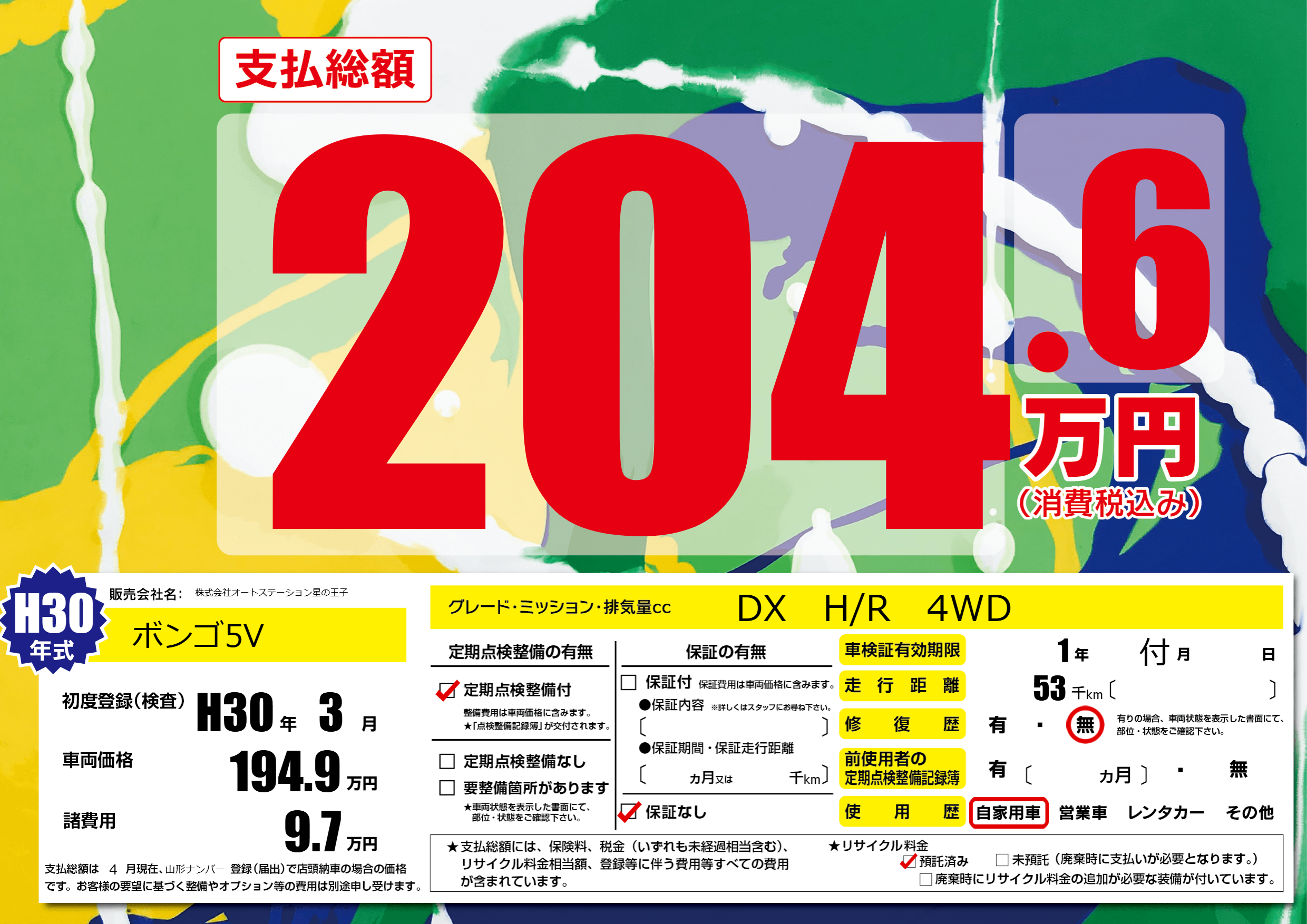 | 車名 | ボンゴ5V | グレード ミッション 排気量 |