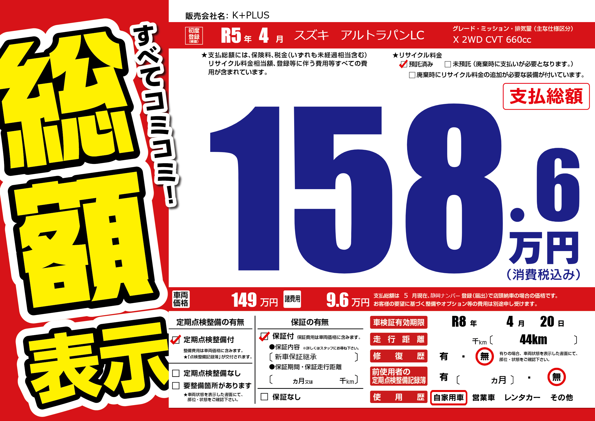| 走行キロ | - | 初年度登録 | R5年4月 |