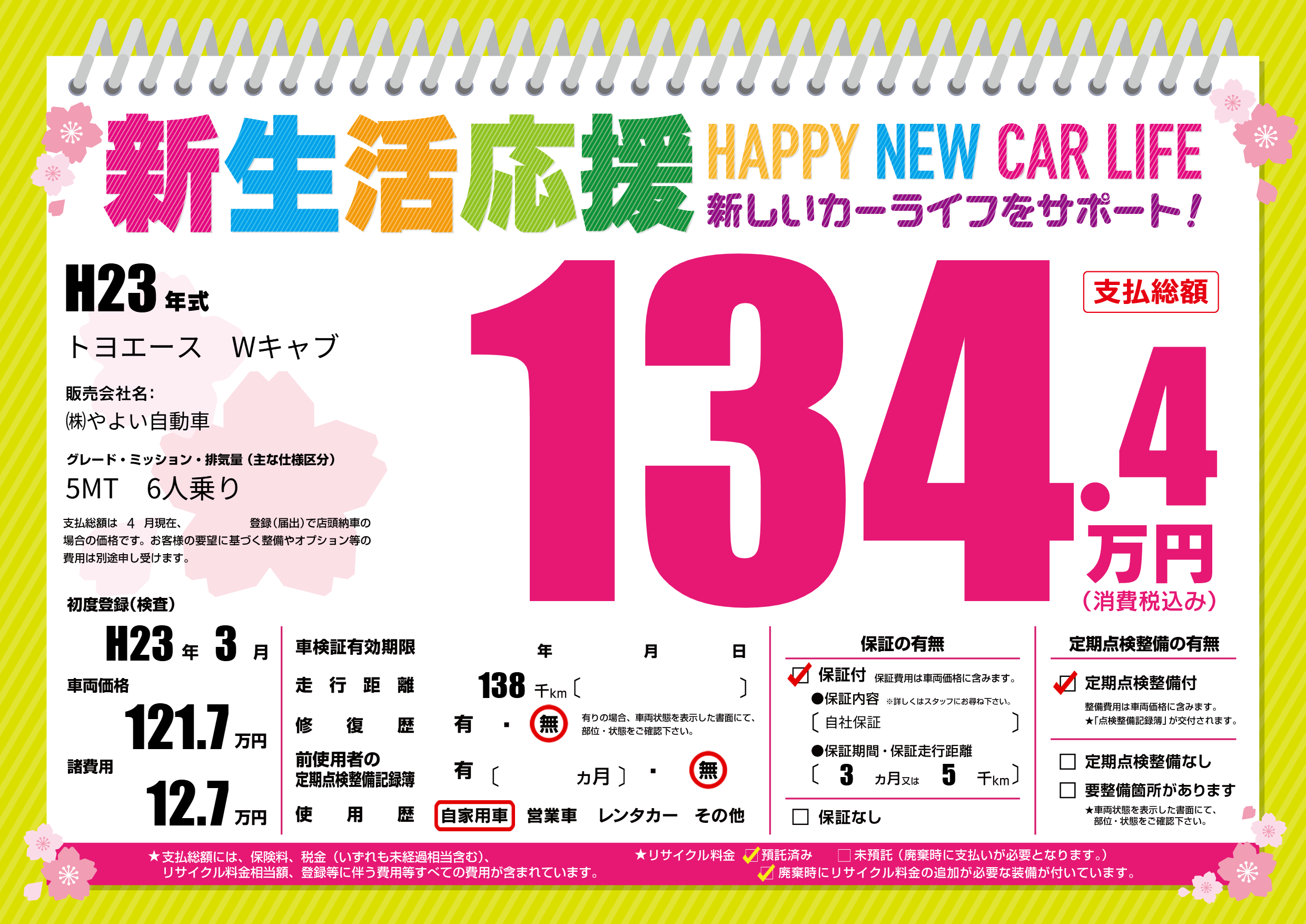 | 走行キロ | 13.8万km | 初年度登録 | H23年3月 |