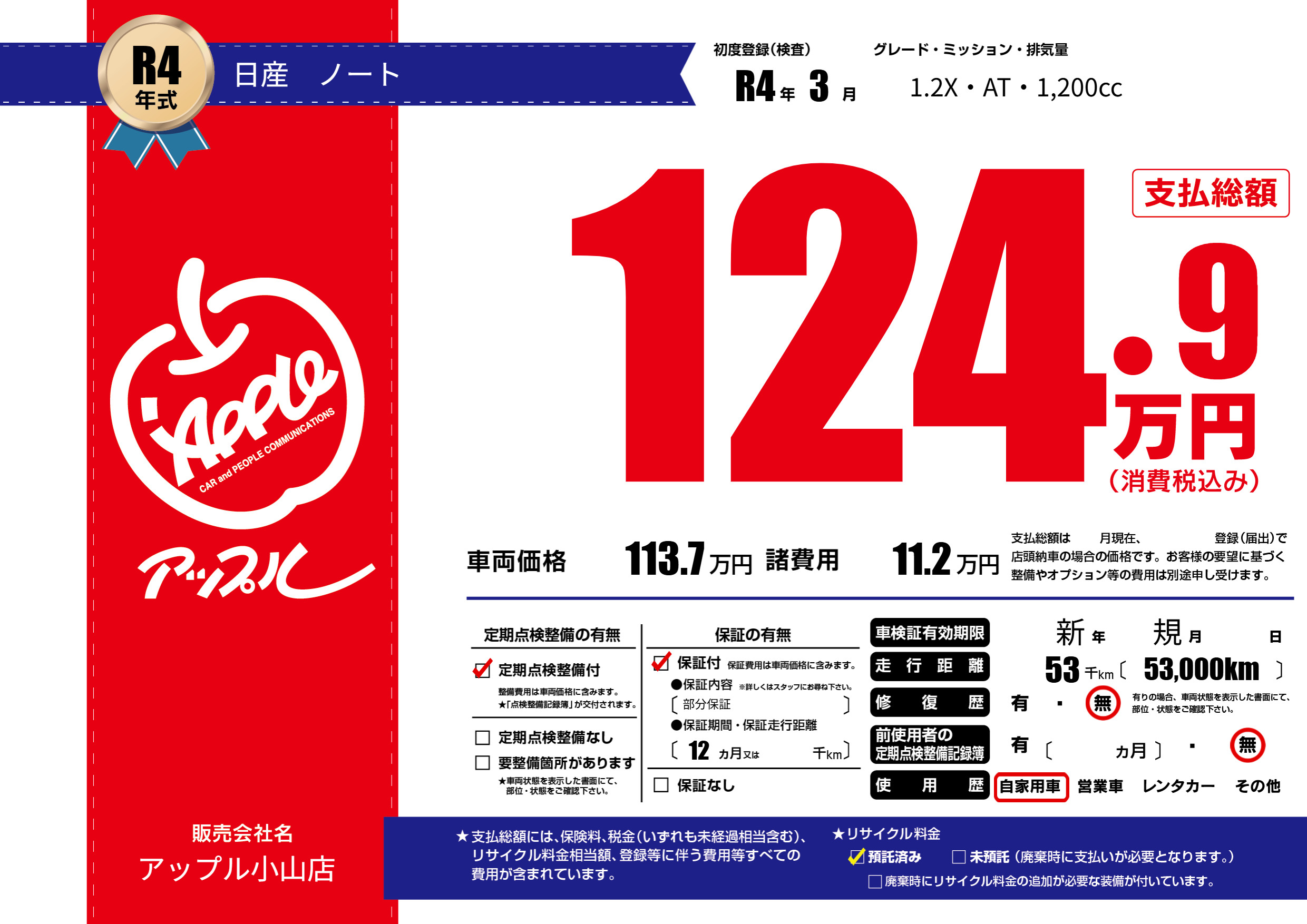 | 車名 | 日産 ノート | グレード ミッション 排気量 |