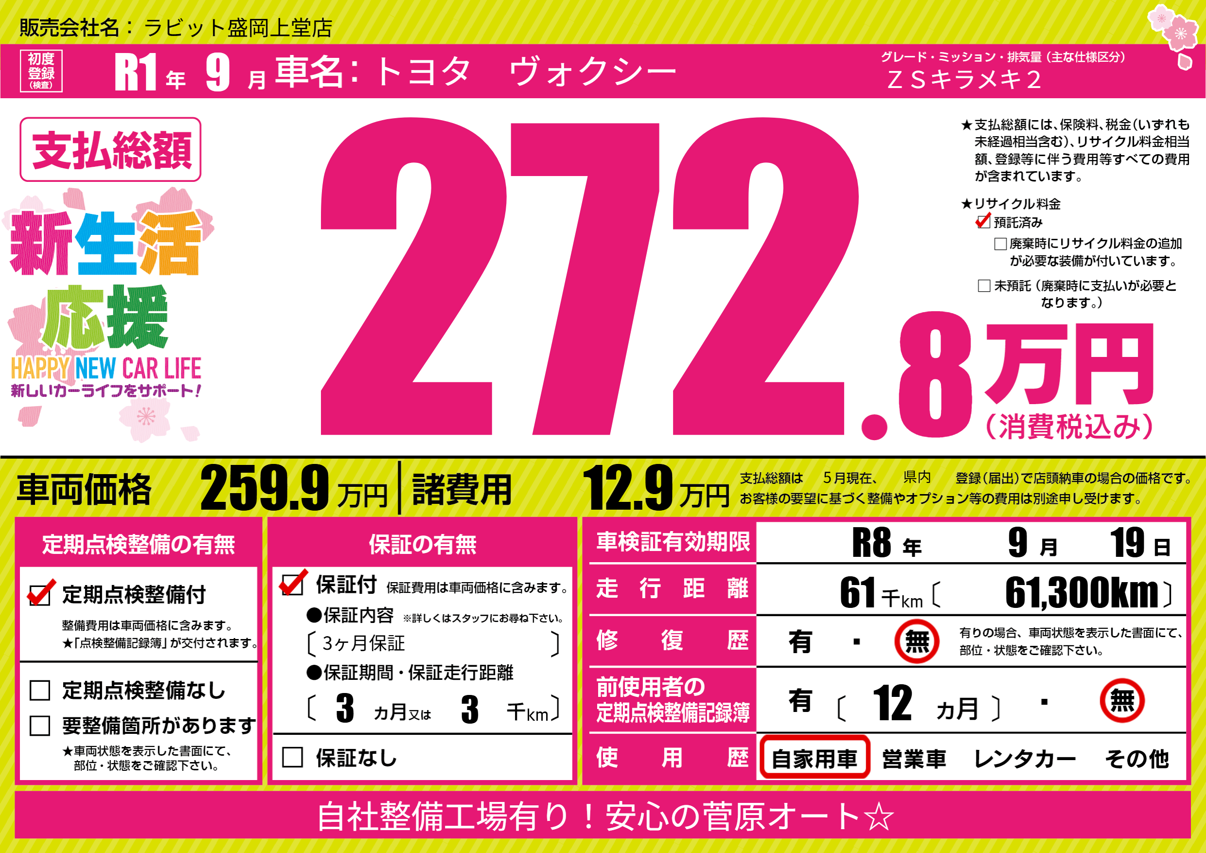 | 走行キロ | 6.1万km | 初年度登録 | R1年9月 |