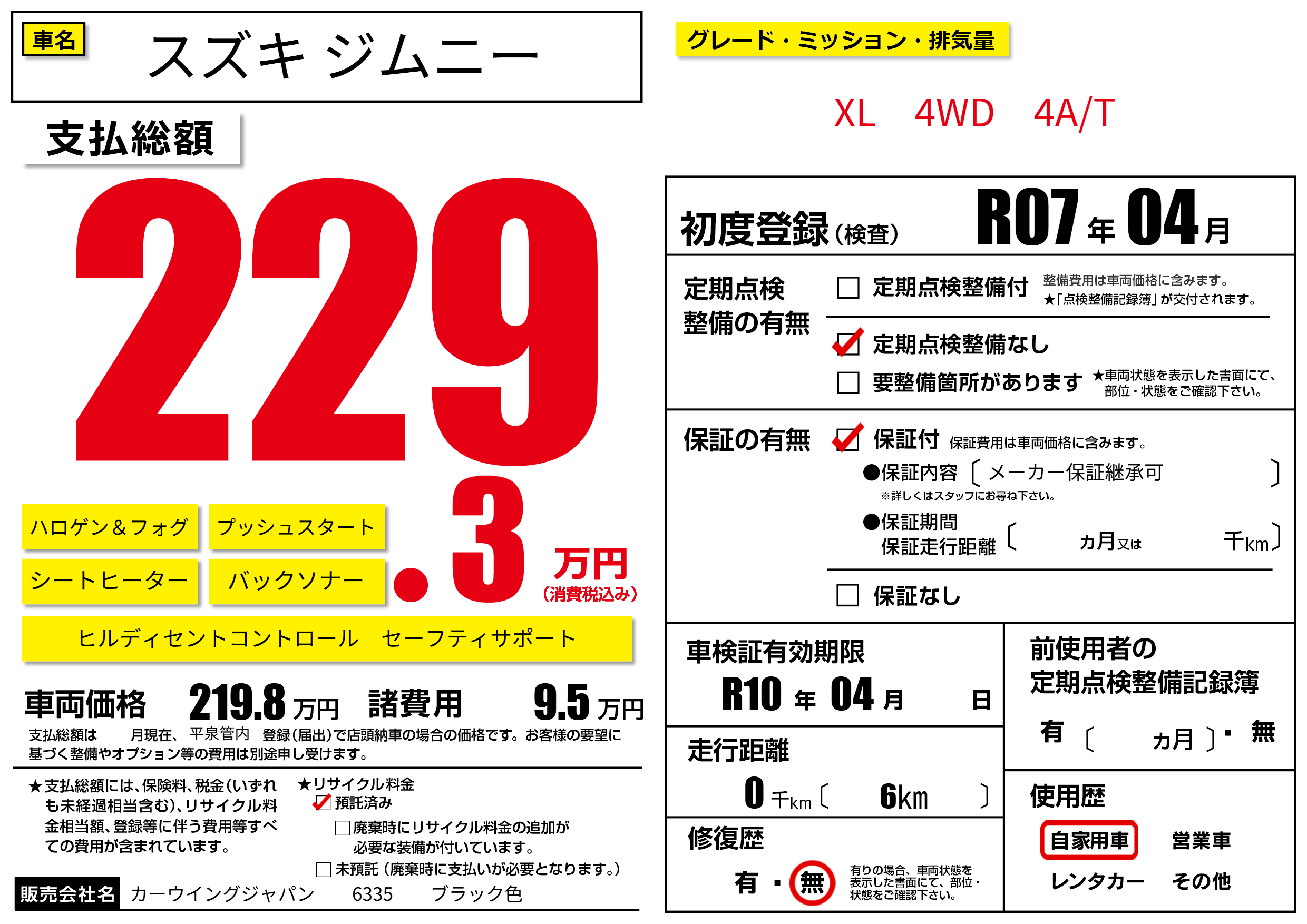 車検制限 R10年 04月 - 日