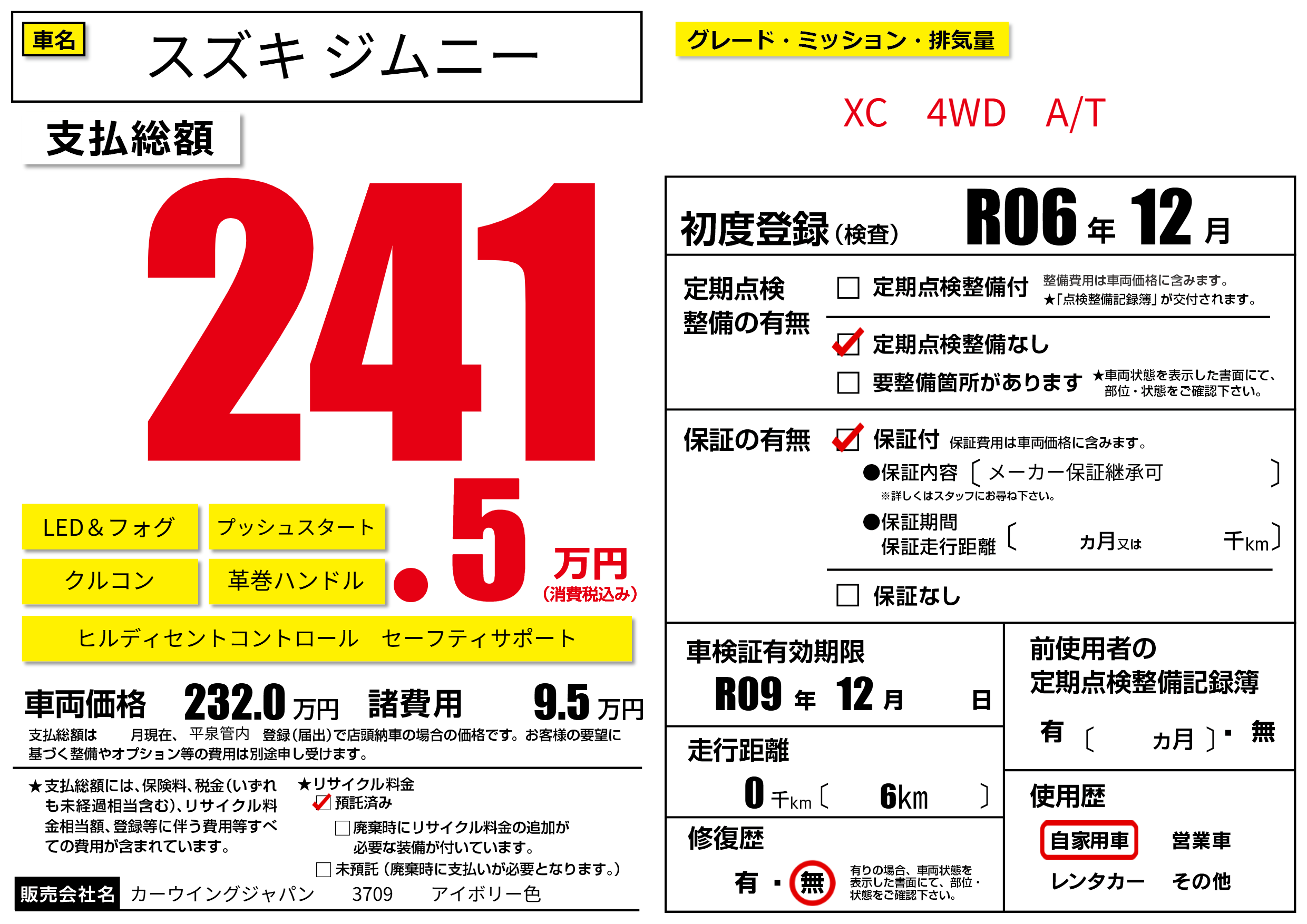 | 走行キロ | - | 初年度登録 | R06年12月 |