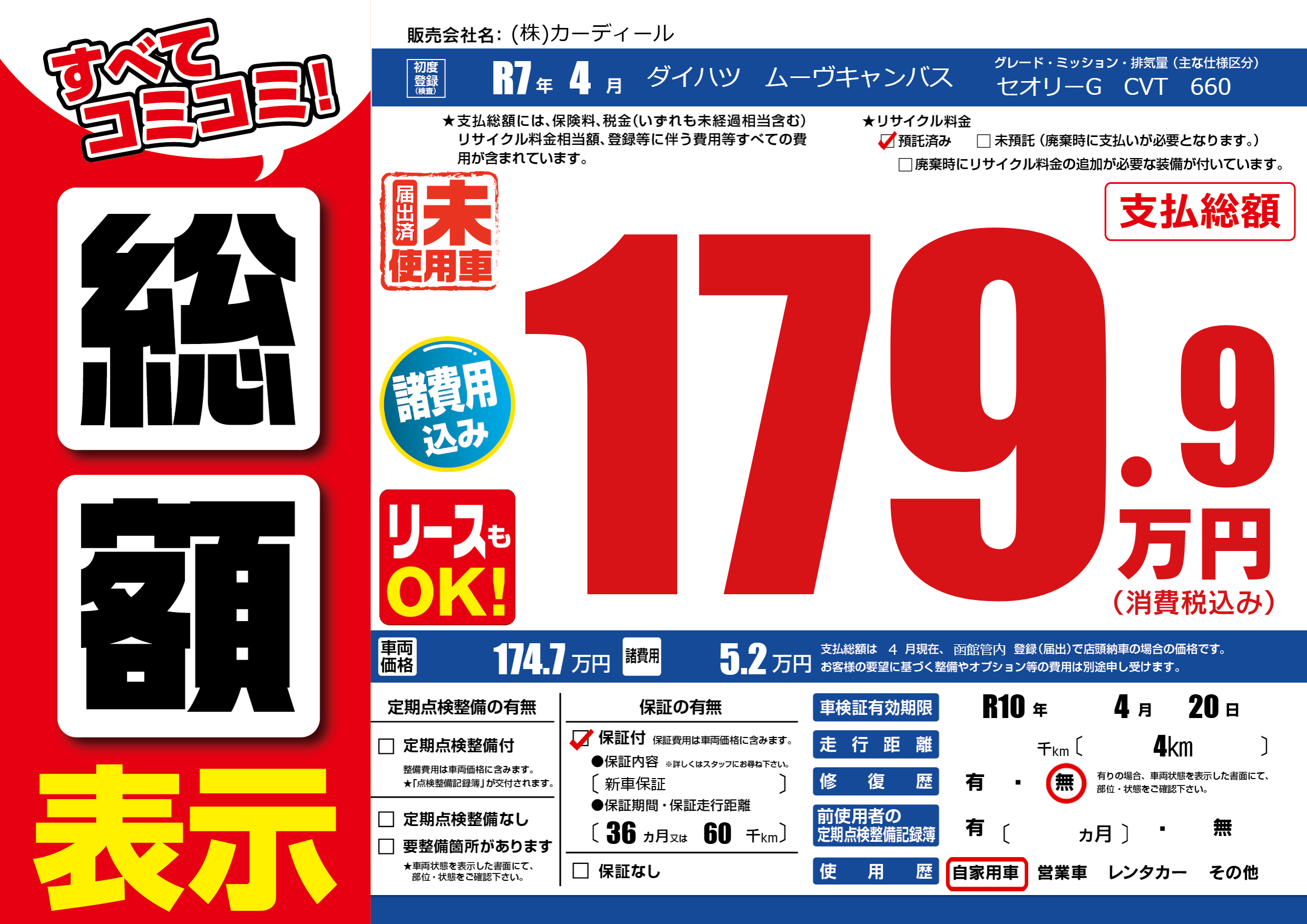 | 車検制限 | R10年 4月 20日 | ||