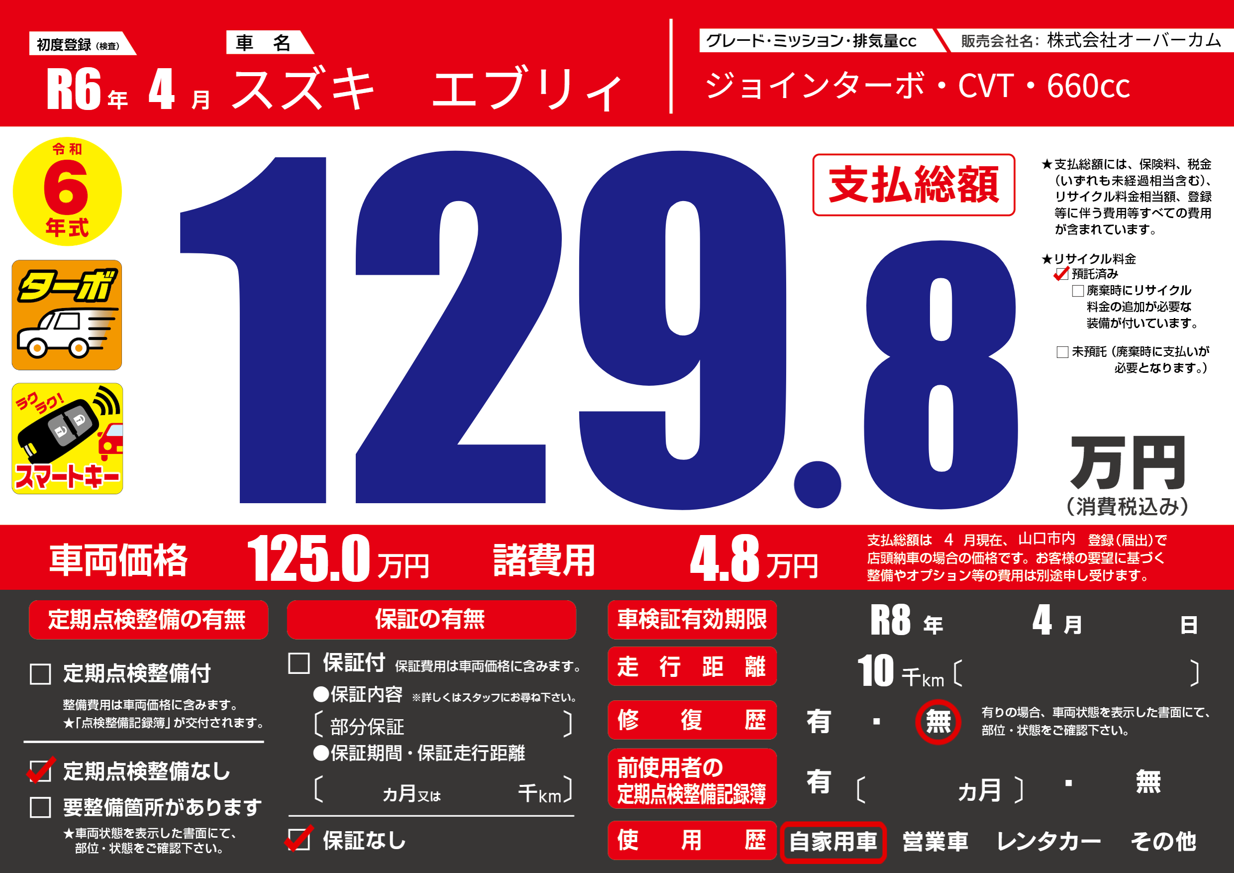なし | 車検制限 | R8年4月---月 |