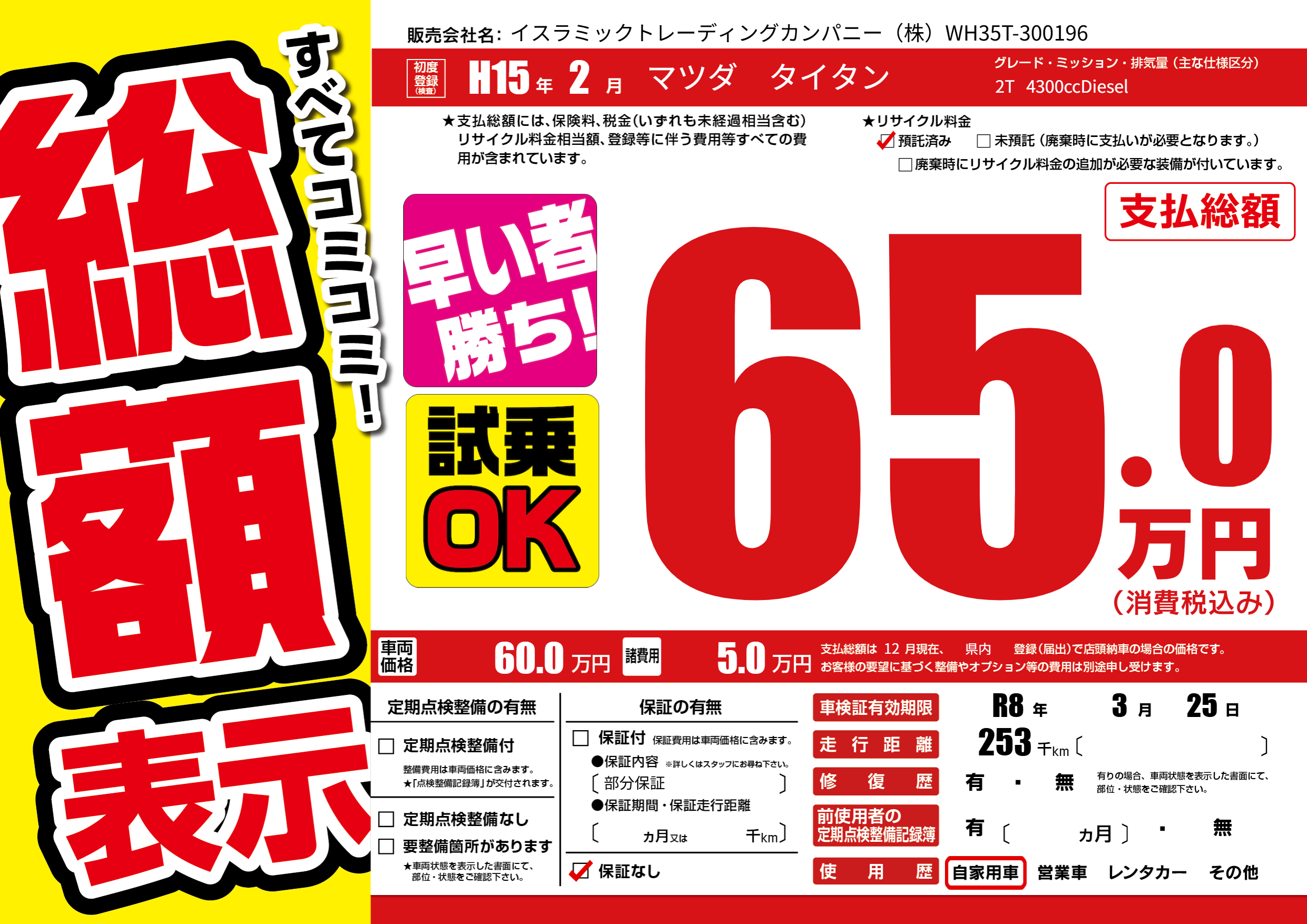 | 車検制限 | R8年 3月 25日 | ||
