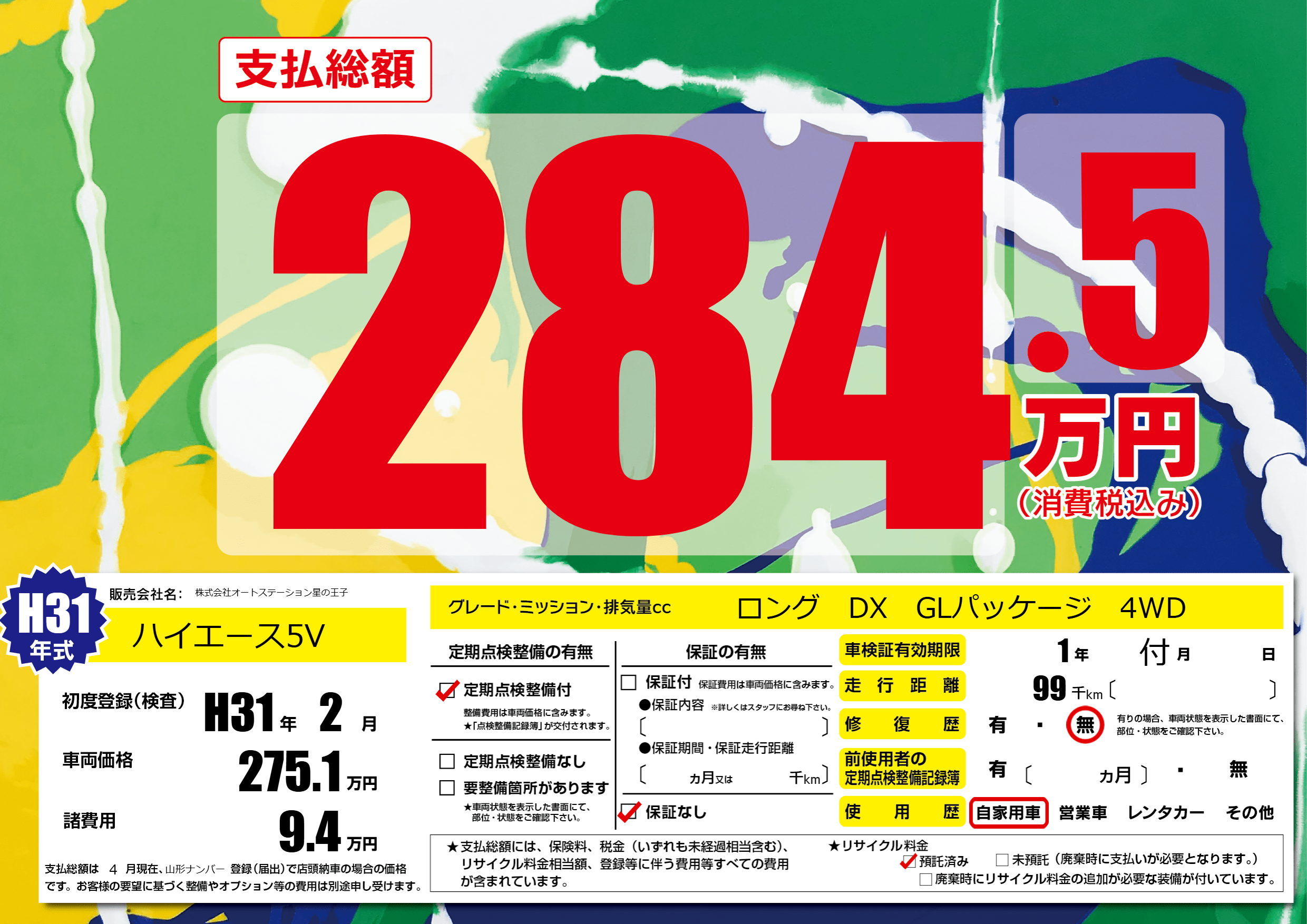| 初年度登録 | H31年2月 | ||