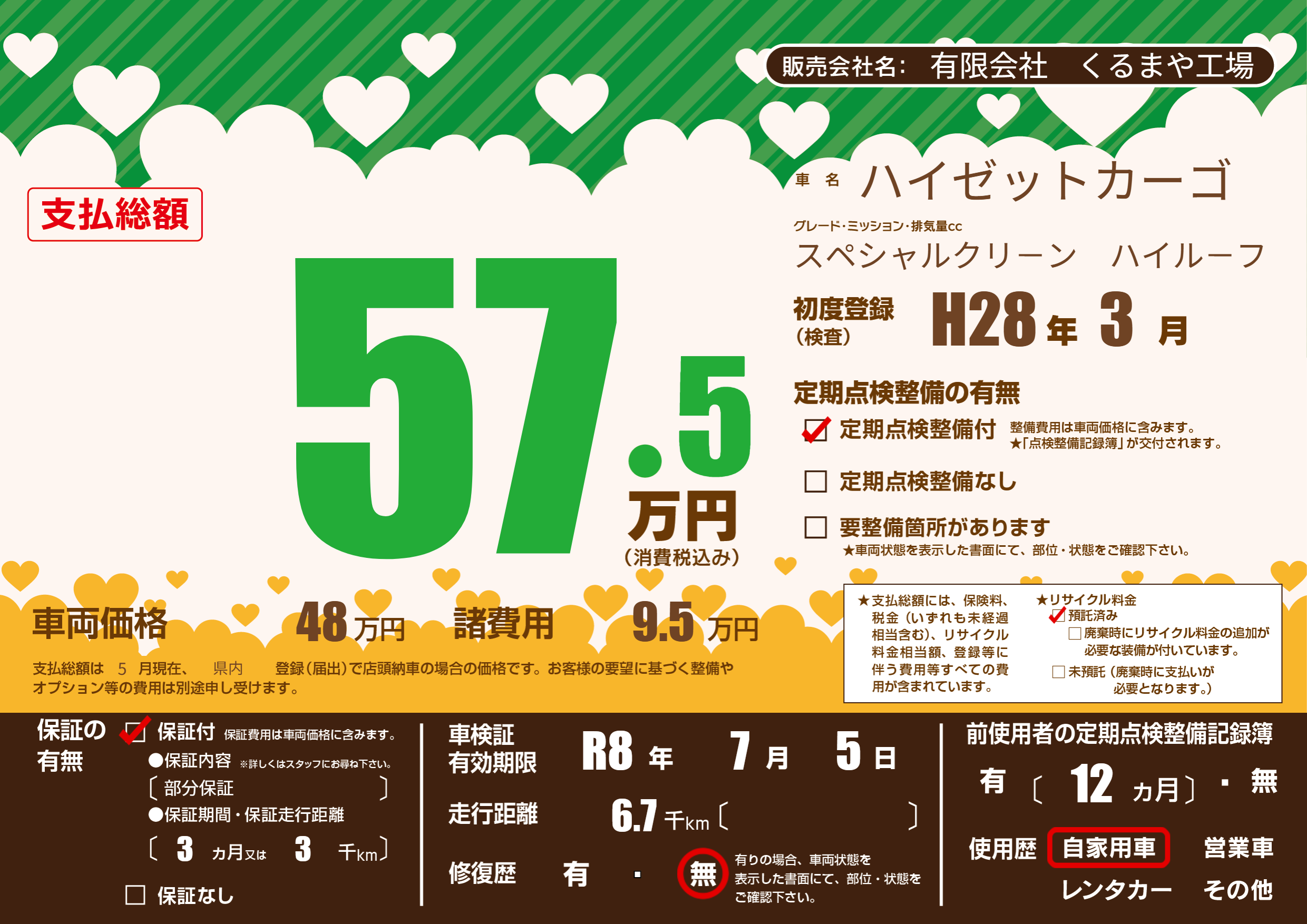 保証付き 保証内容(部分保証) 3ヶ月または(3)千kmまで |
