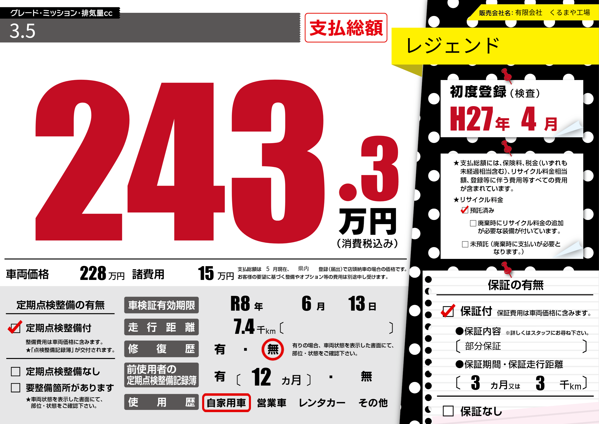 なし | 車検制限 | R8年6月13月 |