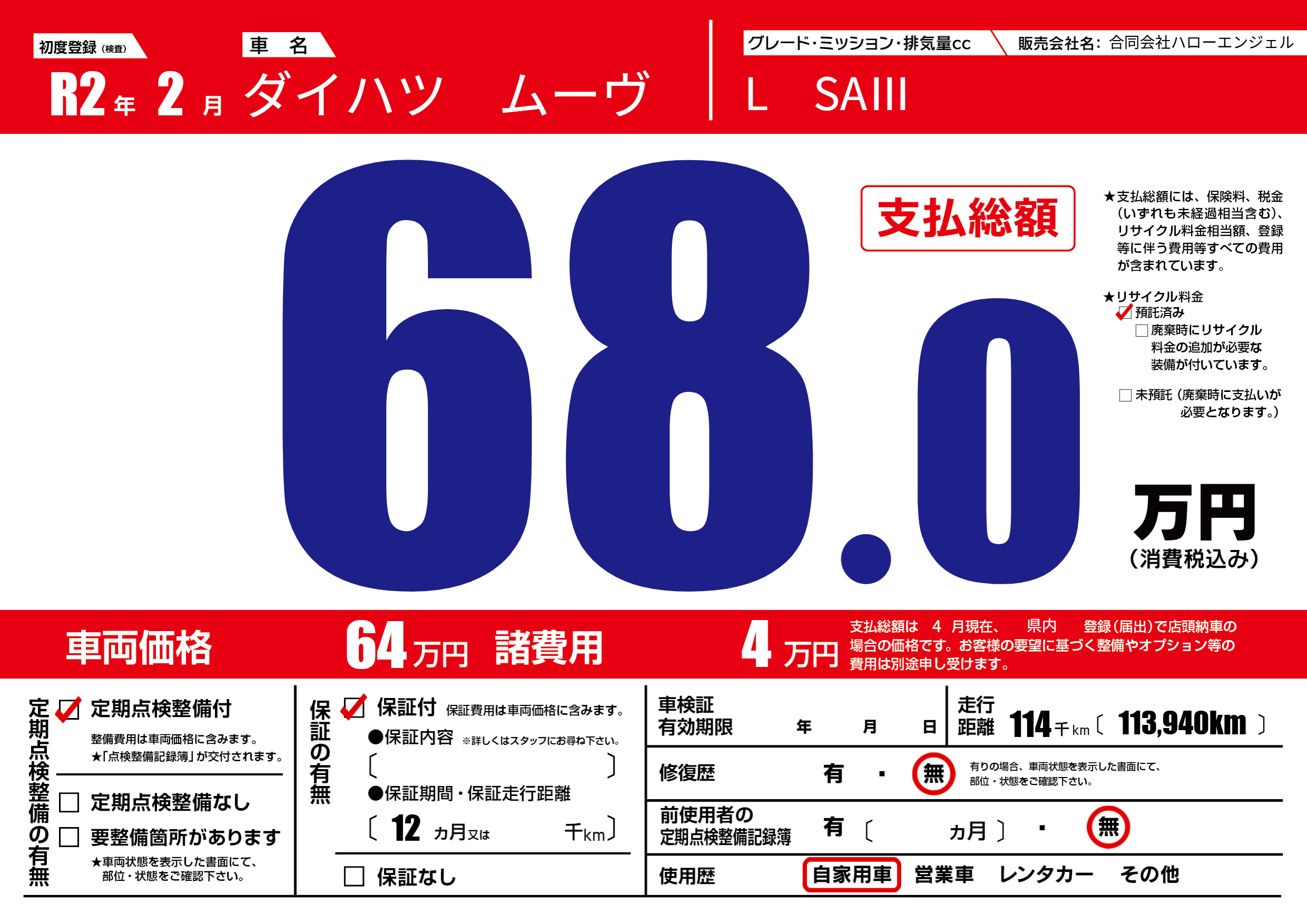 | 定期点検整備 | 定期点検整備あり | ||
