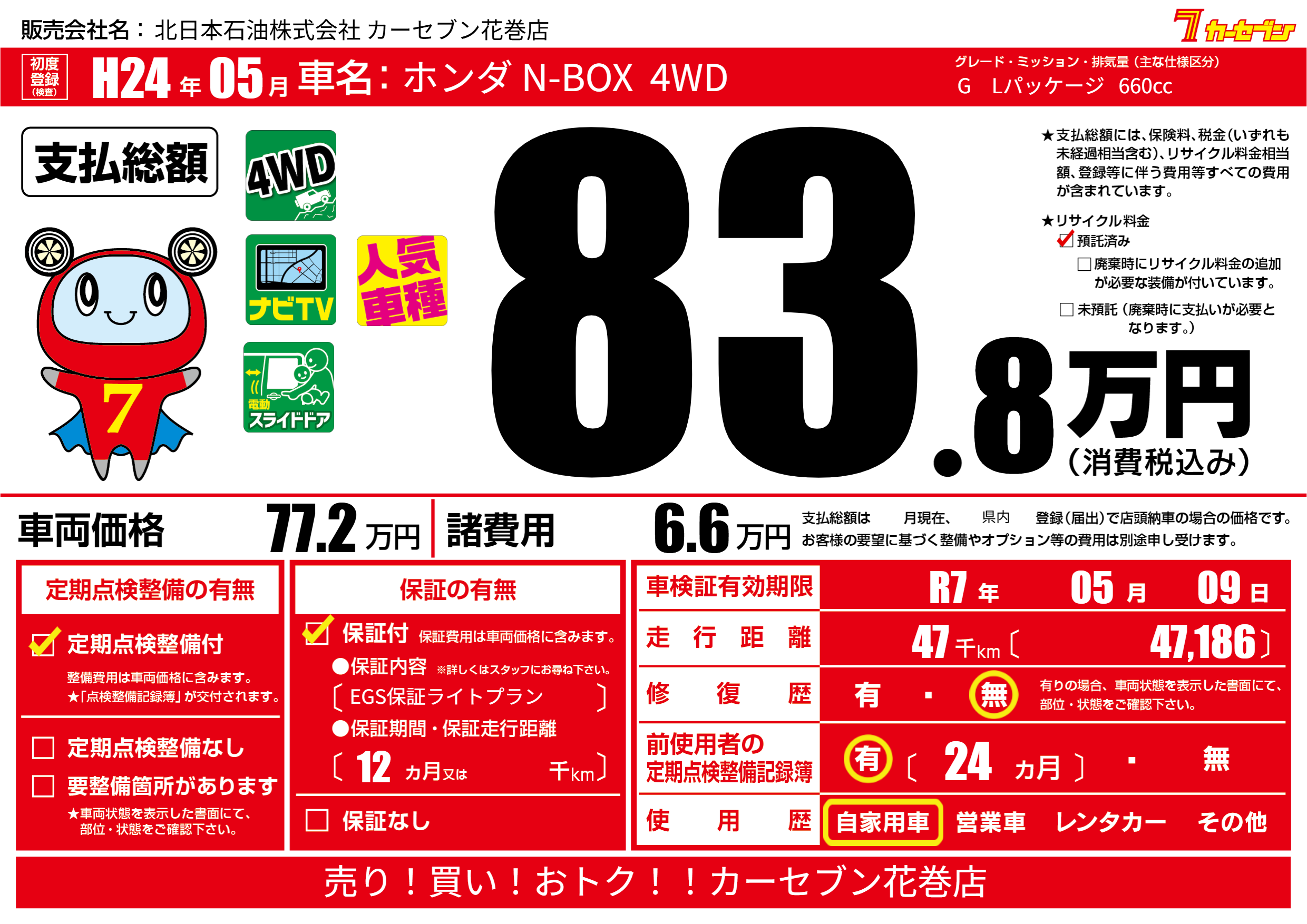 | 車検制限 | R7年 05月 09日 | ||