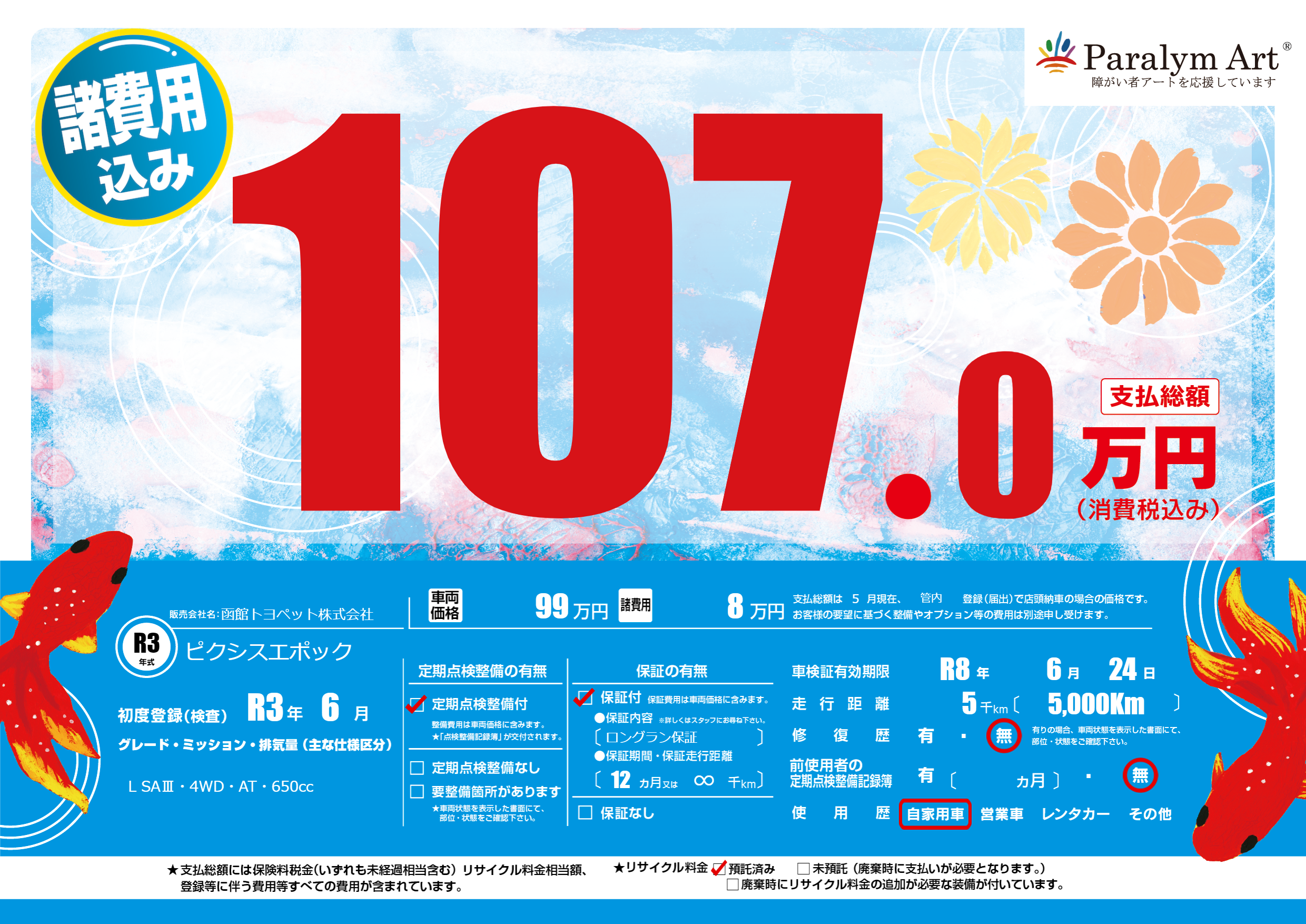 | 走行キロ | 0.5万km | 初年度登録 | R3年6月 |