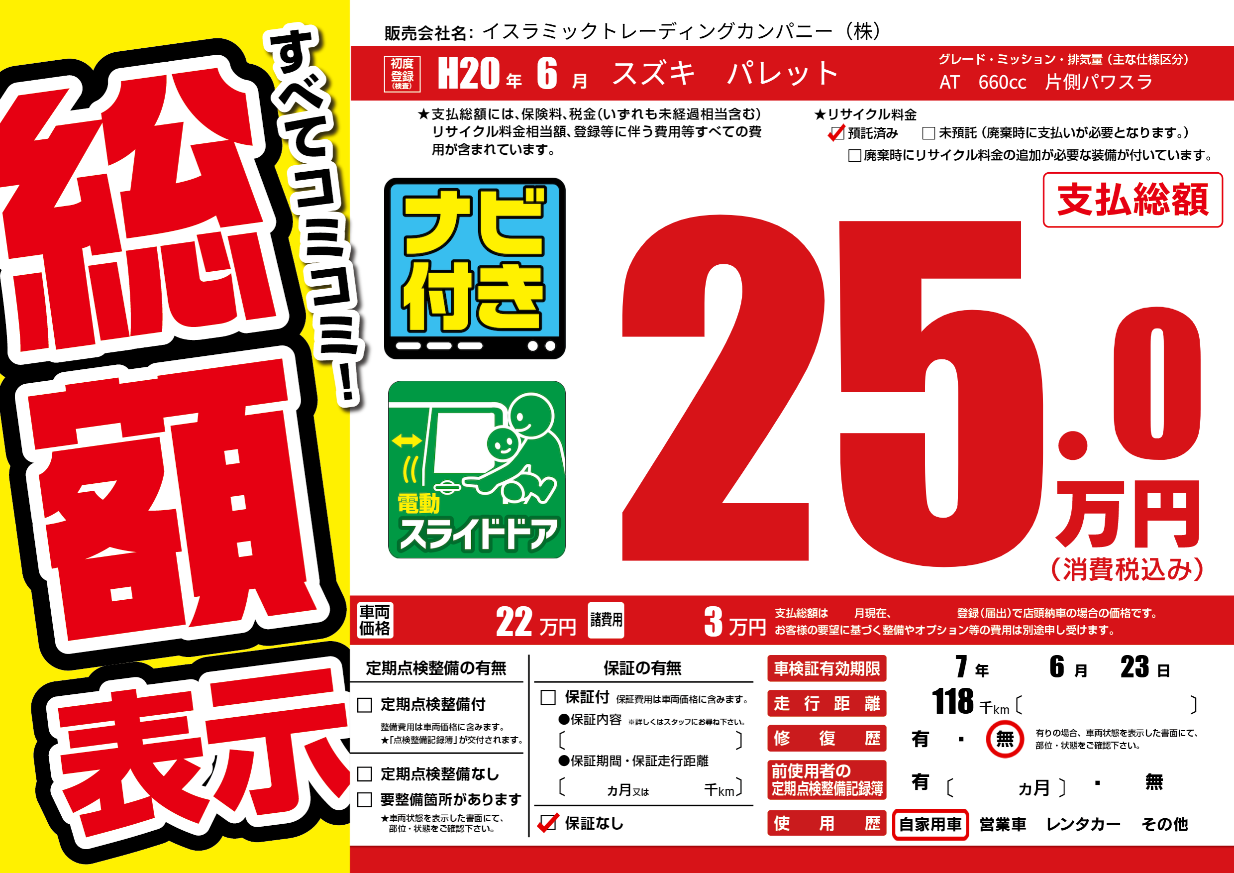 | 車検制限 | 7年 6月 23日 | ||