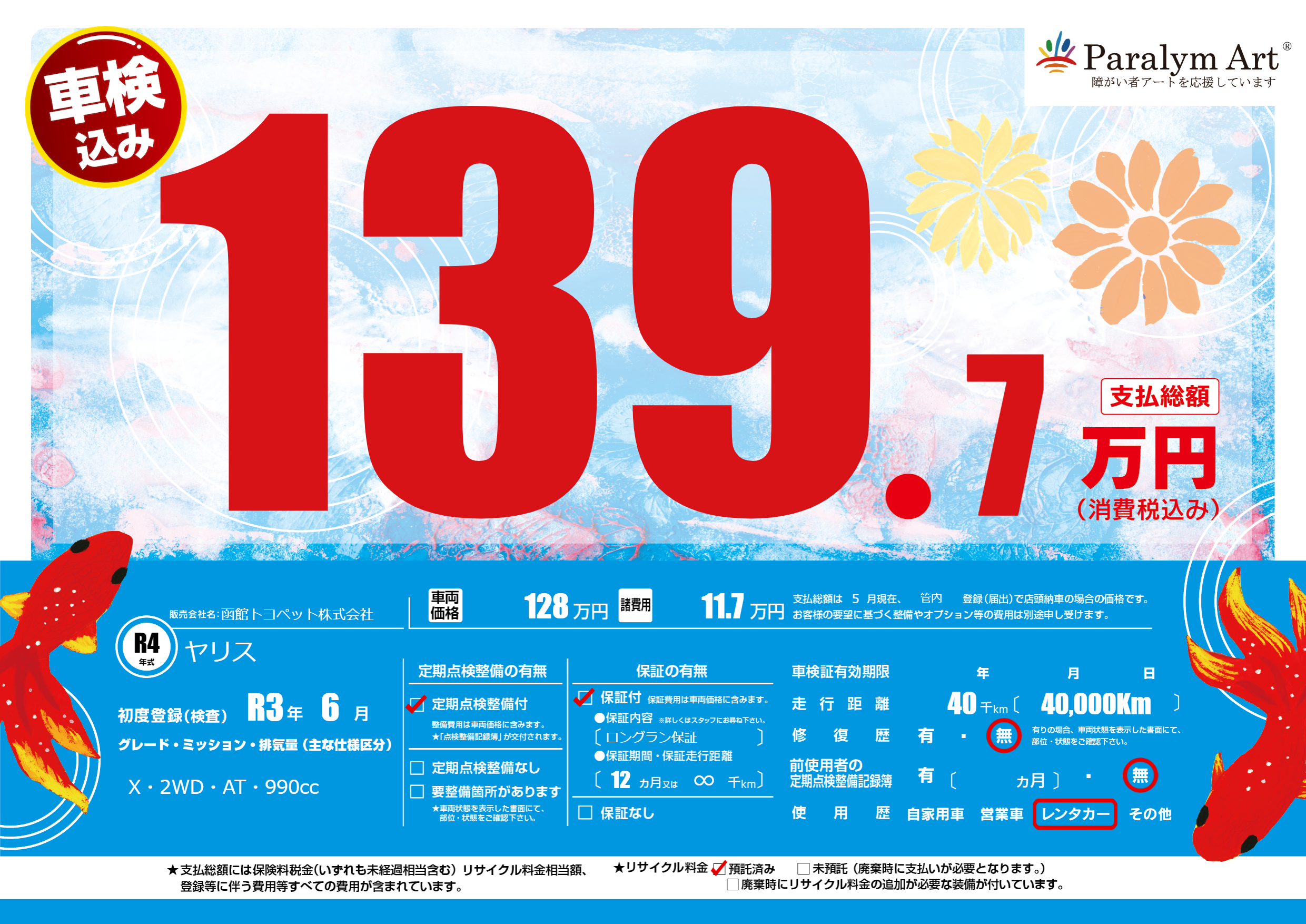 | 走行キロ | 4万km | 初年度登録 | R3年6月 |