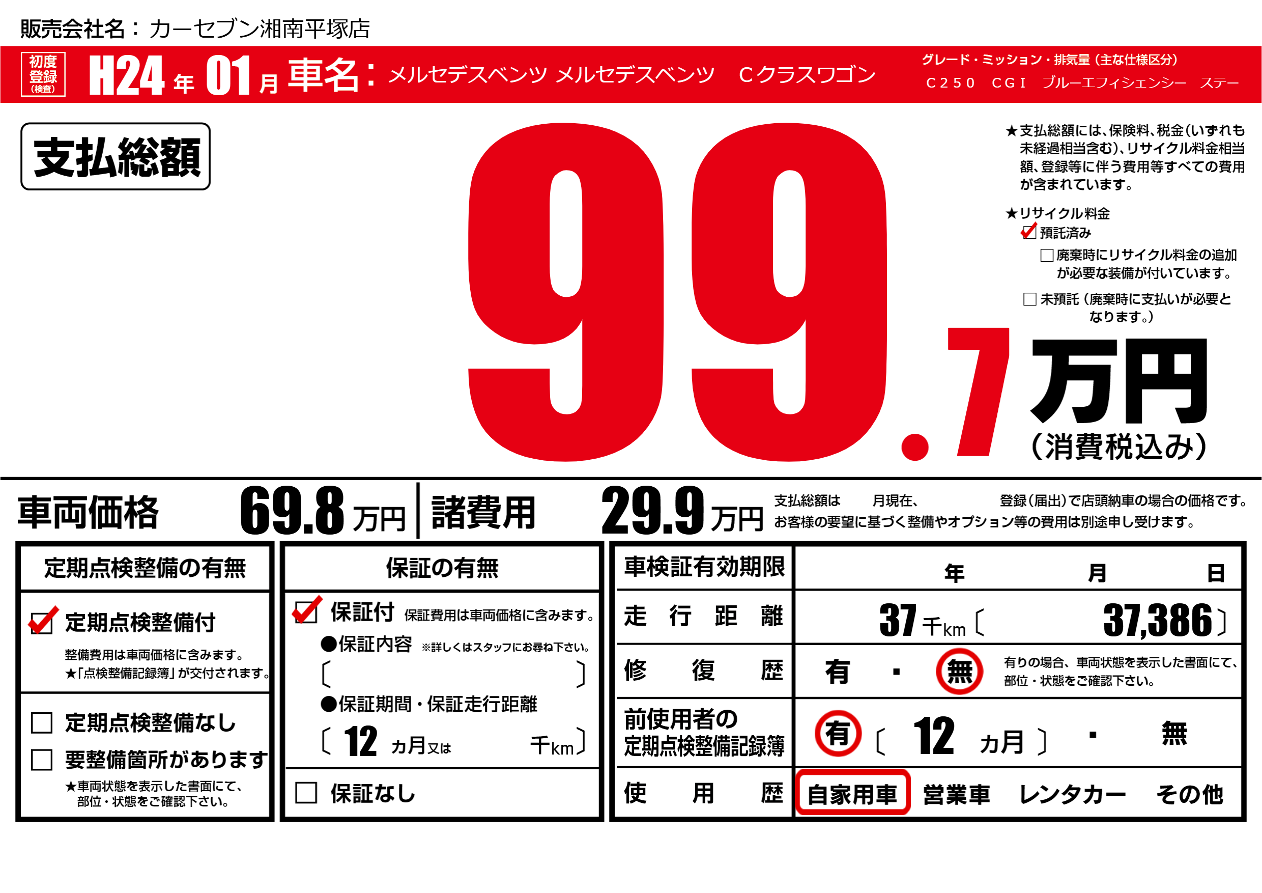 | 定期点検整備 | 定期点検整備あり | ||