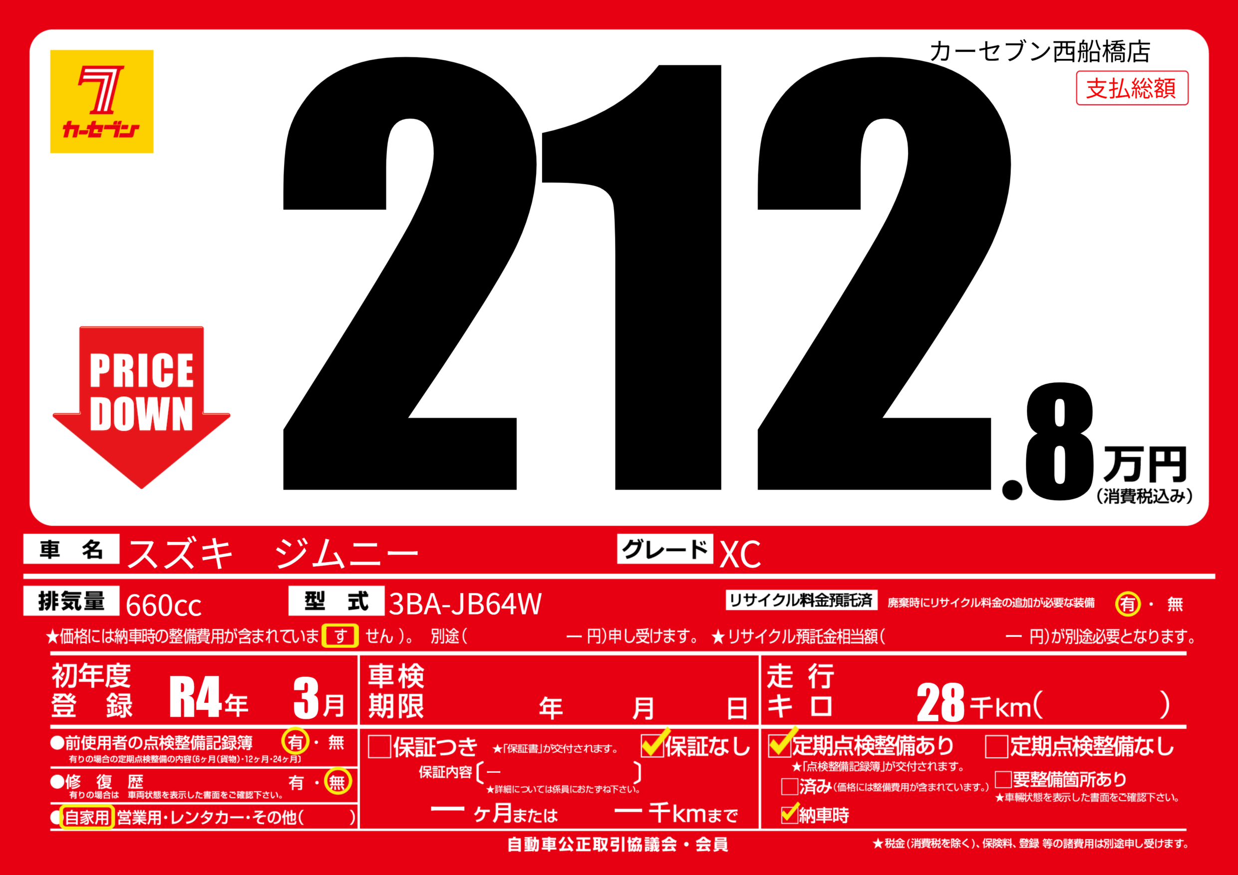 | 走行キロ | 2.8万km | 初年度登録 | R4年3月 |
