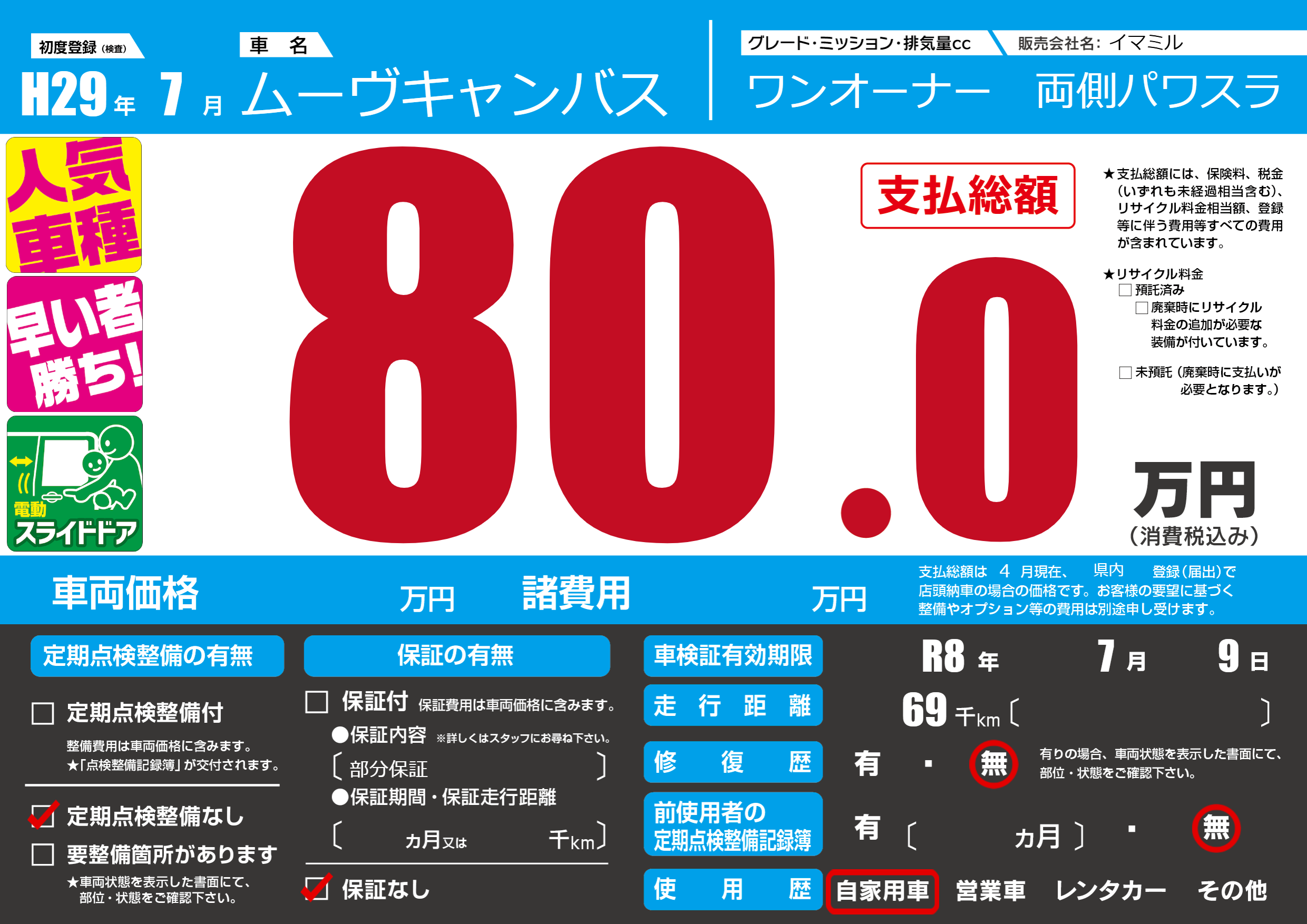 なし | 車検制限 | R8年7月9月 |