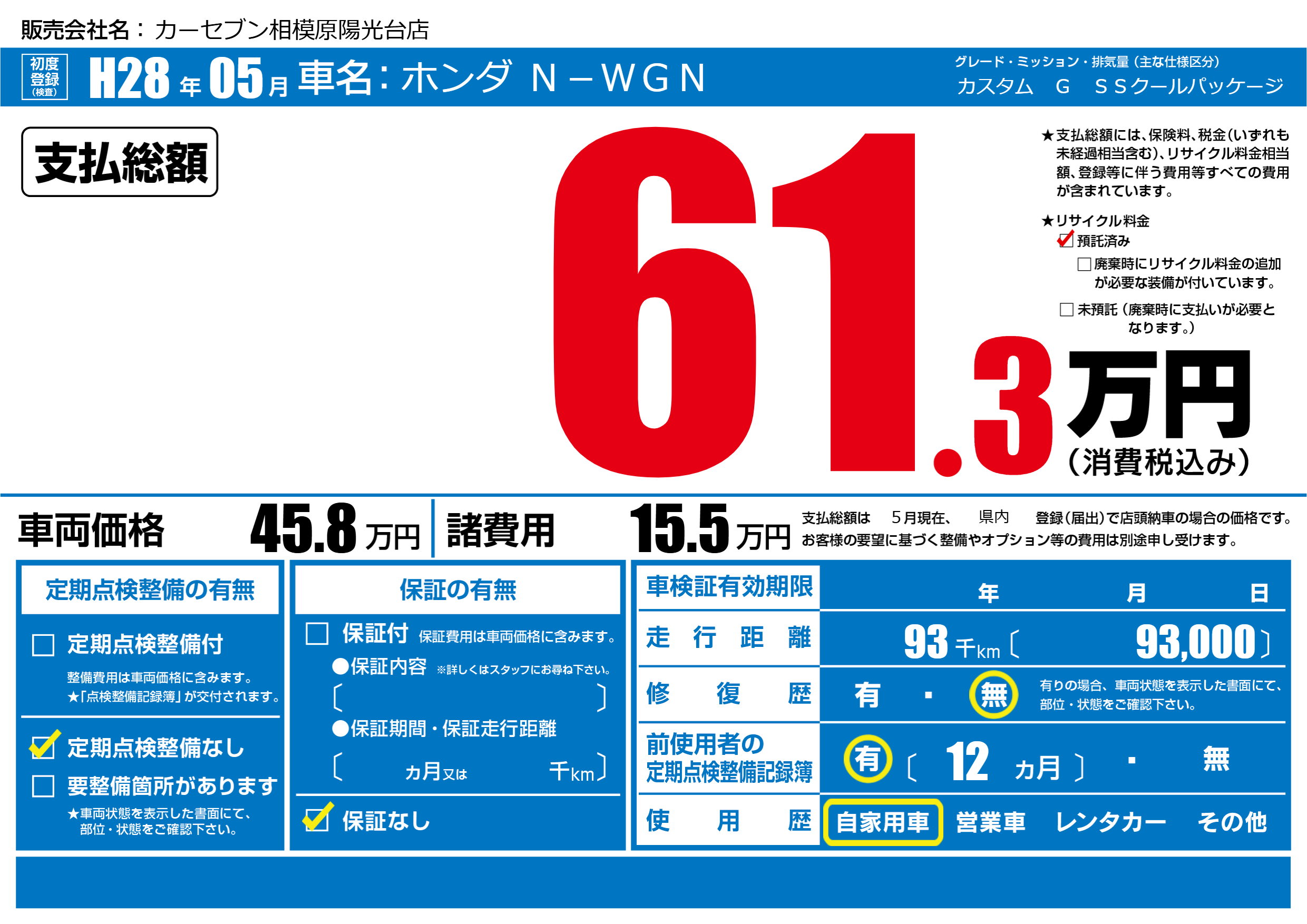 | 車検制限 | - 年 - 月 - 日 | ||