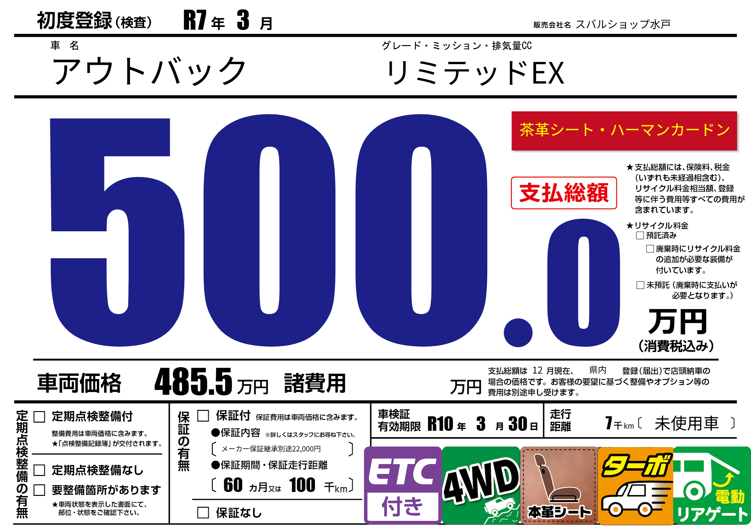 なし | 車検制限 | R10年3月30月 |