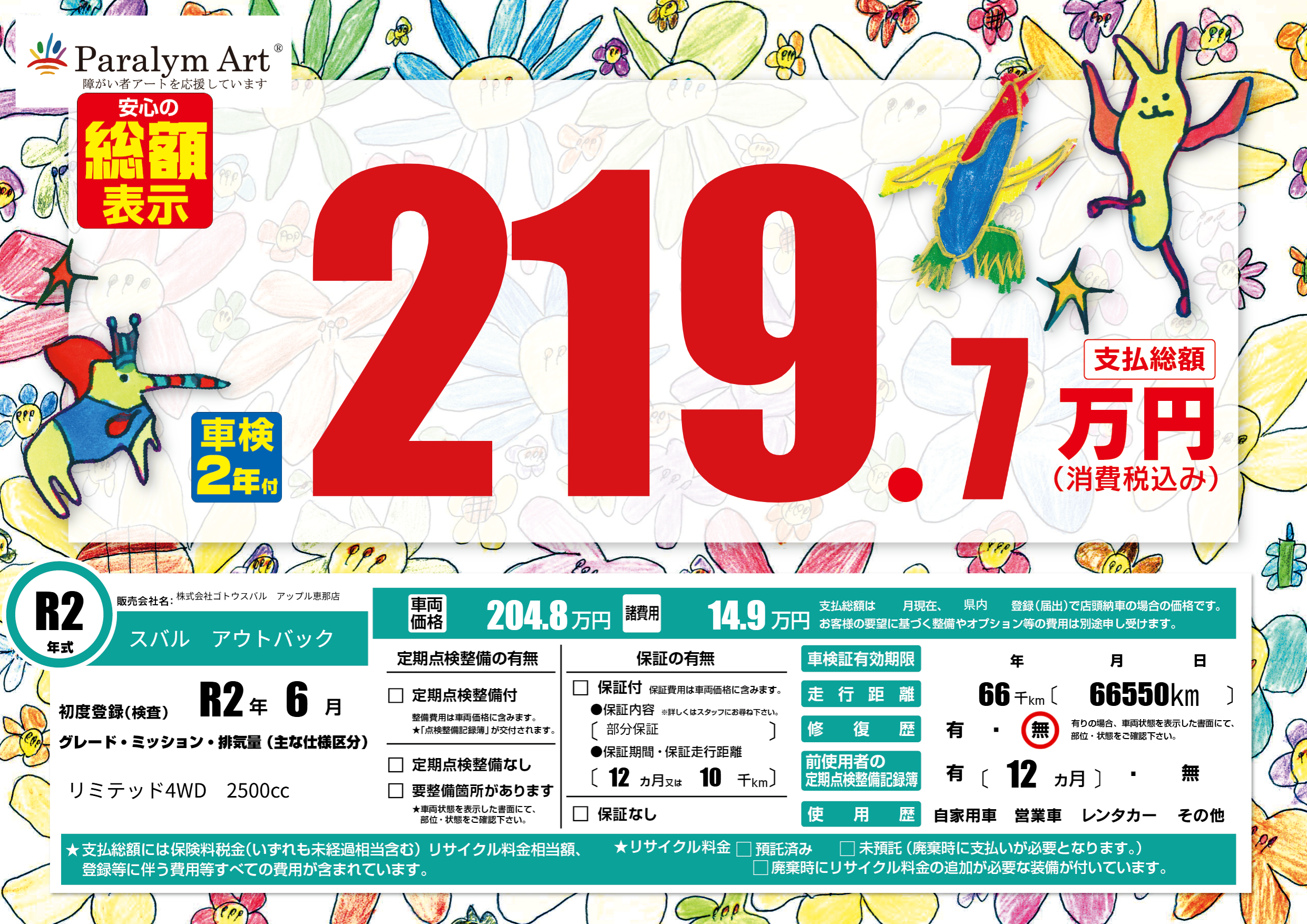 | 車名 | スバル アウトバック | グレード ミッション 排気量 |