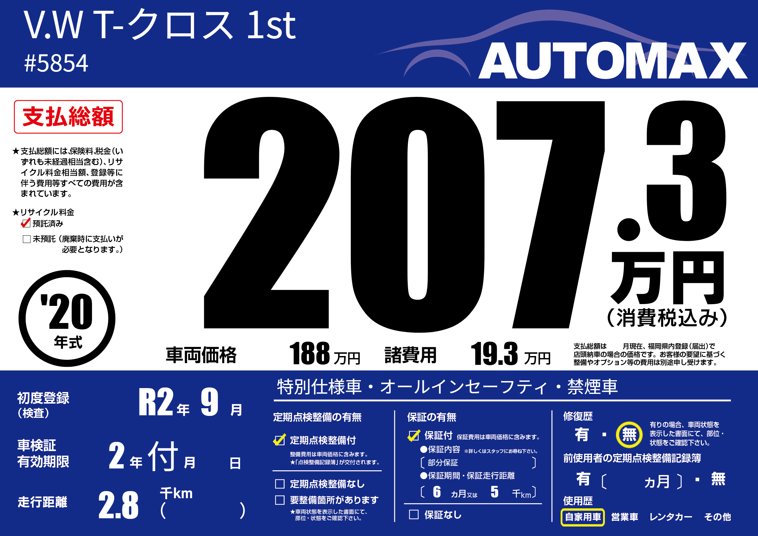 | 車検制限 | 2年 付月 - 日 | ||