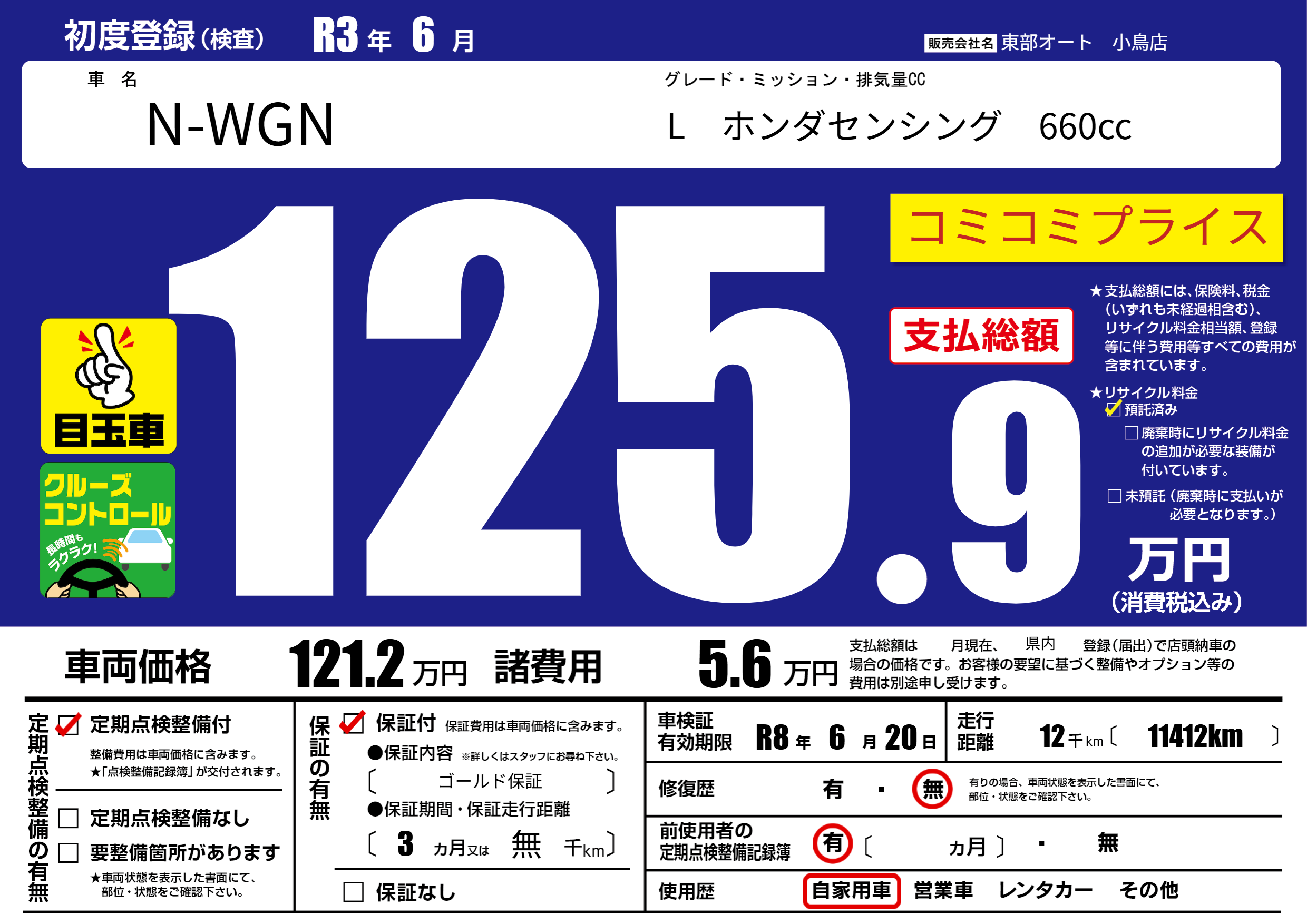 | 車名 | N-WGN | グレード ミッション 排気量 |