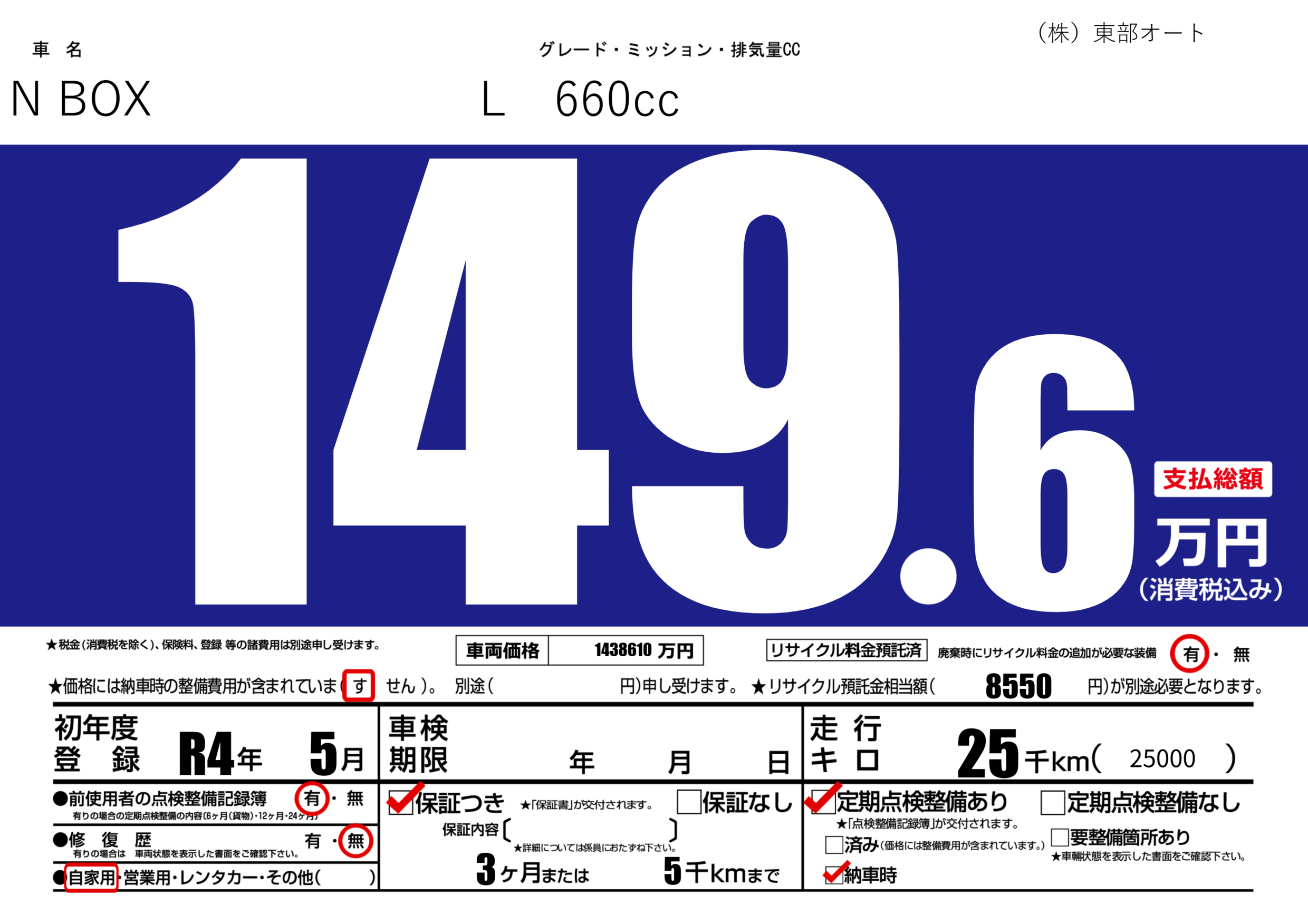 保証付き 保証内容(---) 3ヶ月または(5)千kmまで |