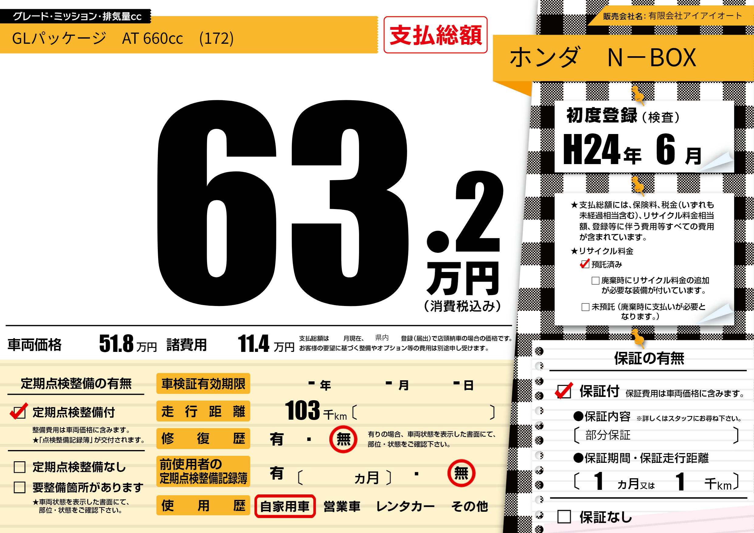 保証付き 保証内容(部分保証) 1ヶ月または(1)千kmまで |