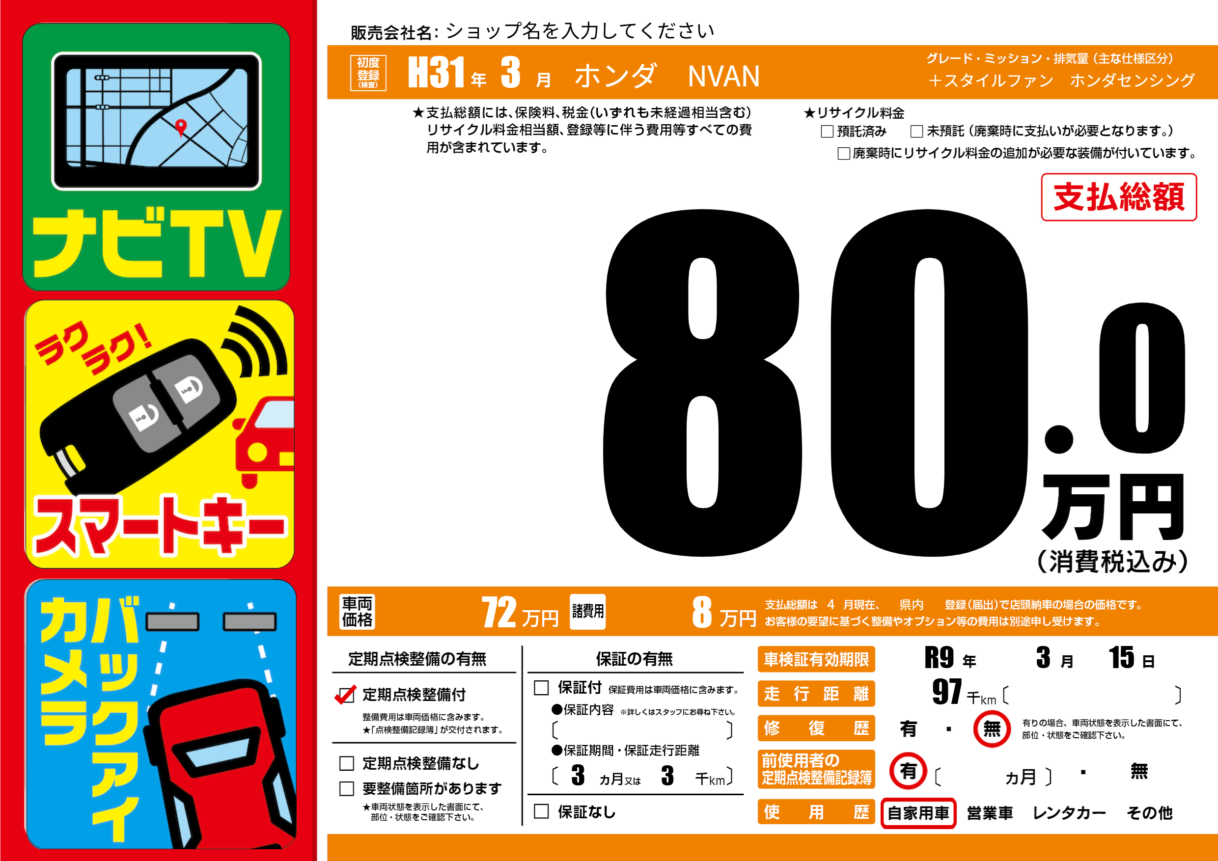 | 定期点検整備 | 定期点検整備あり | ||