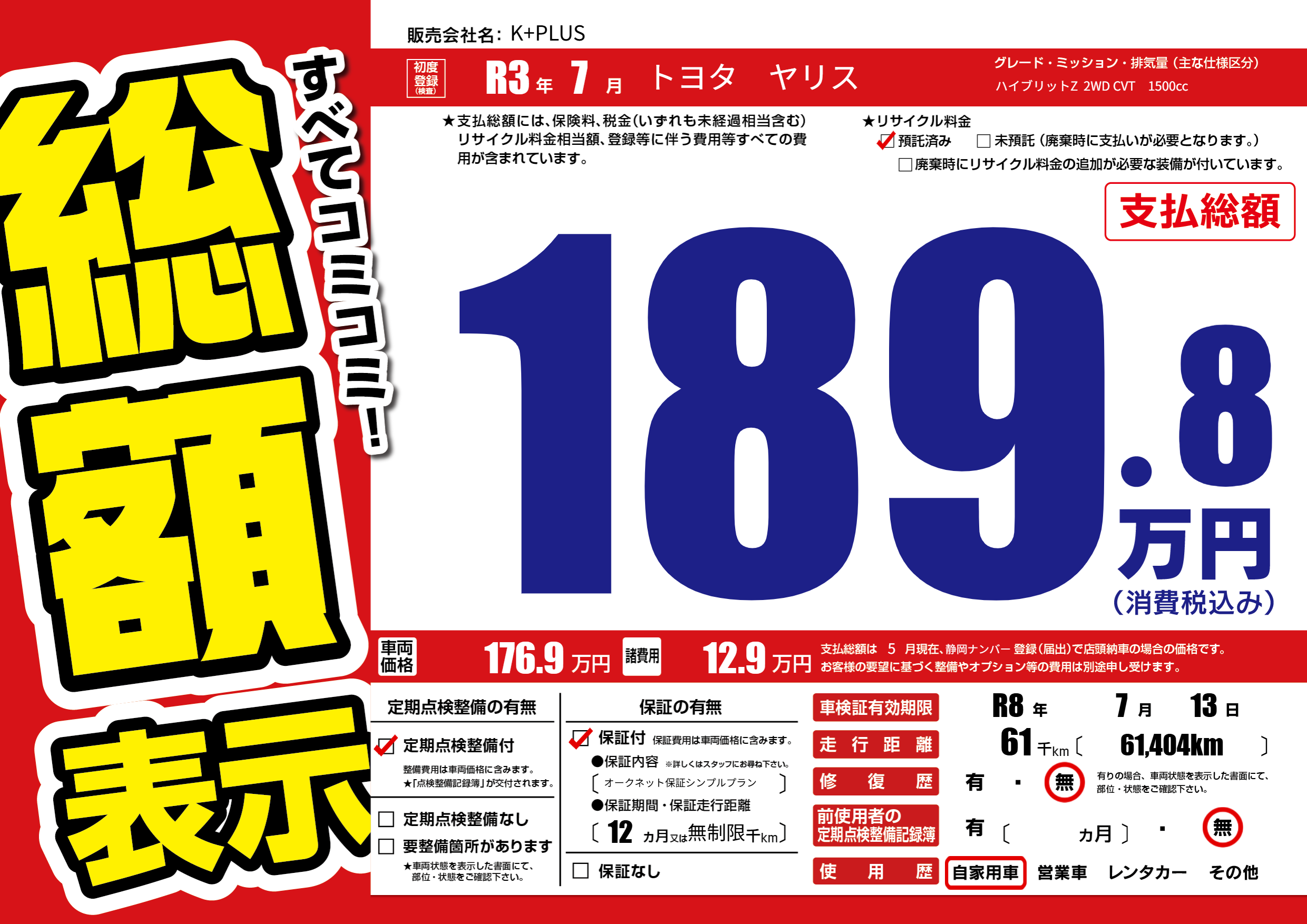 なし | 車検制限 | R8年7月13月 |