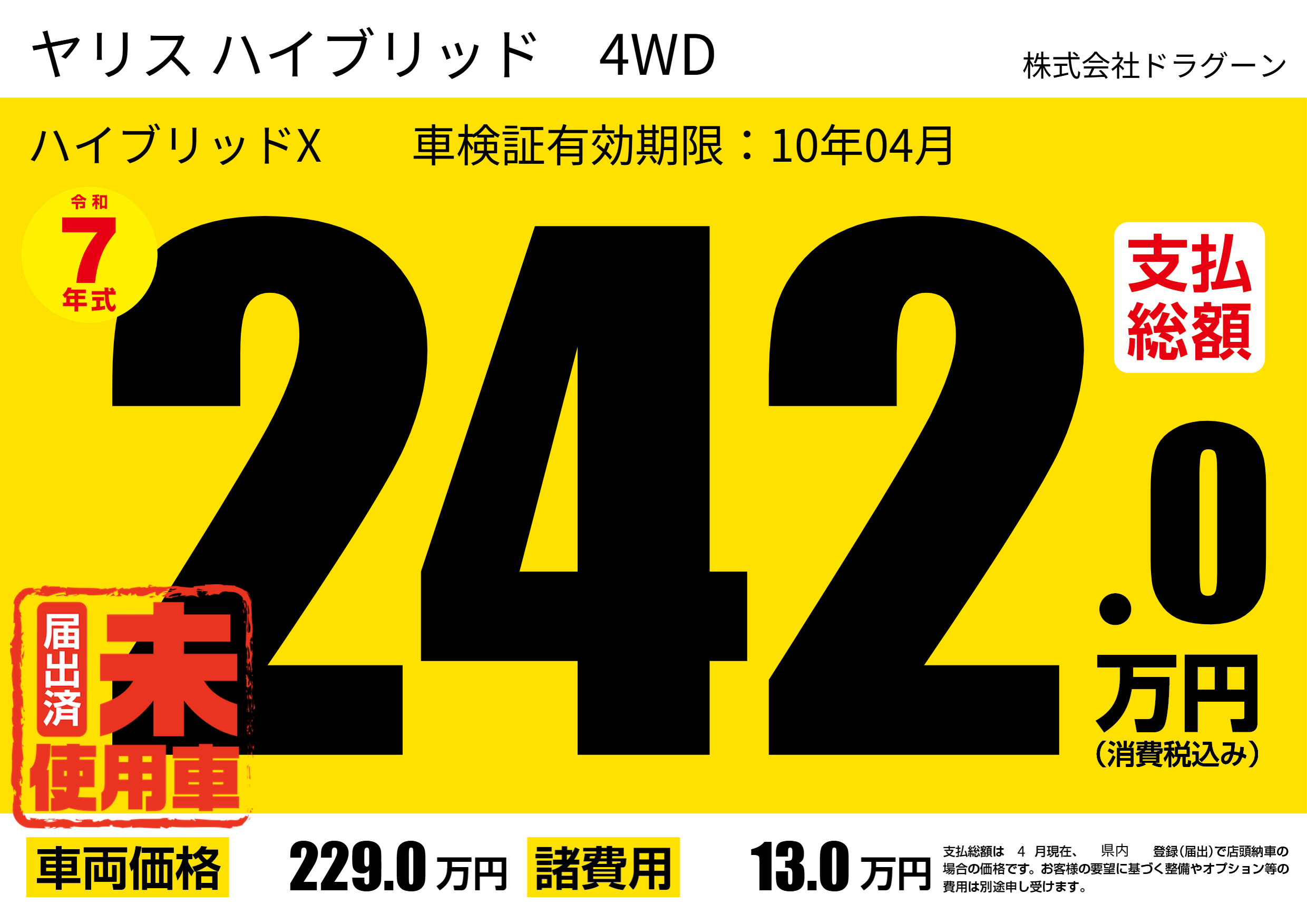 | 車名 | ヤリス ハイブリッド 4WD | グレード ミッション 排気量 |