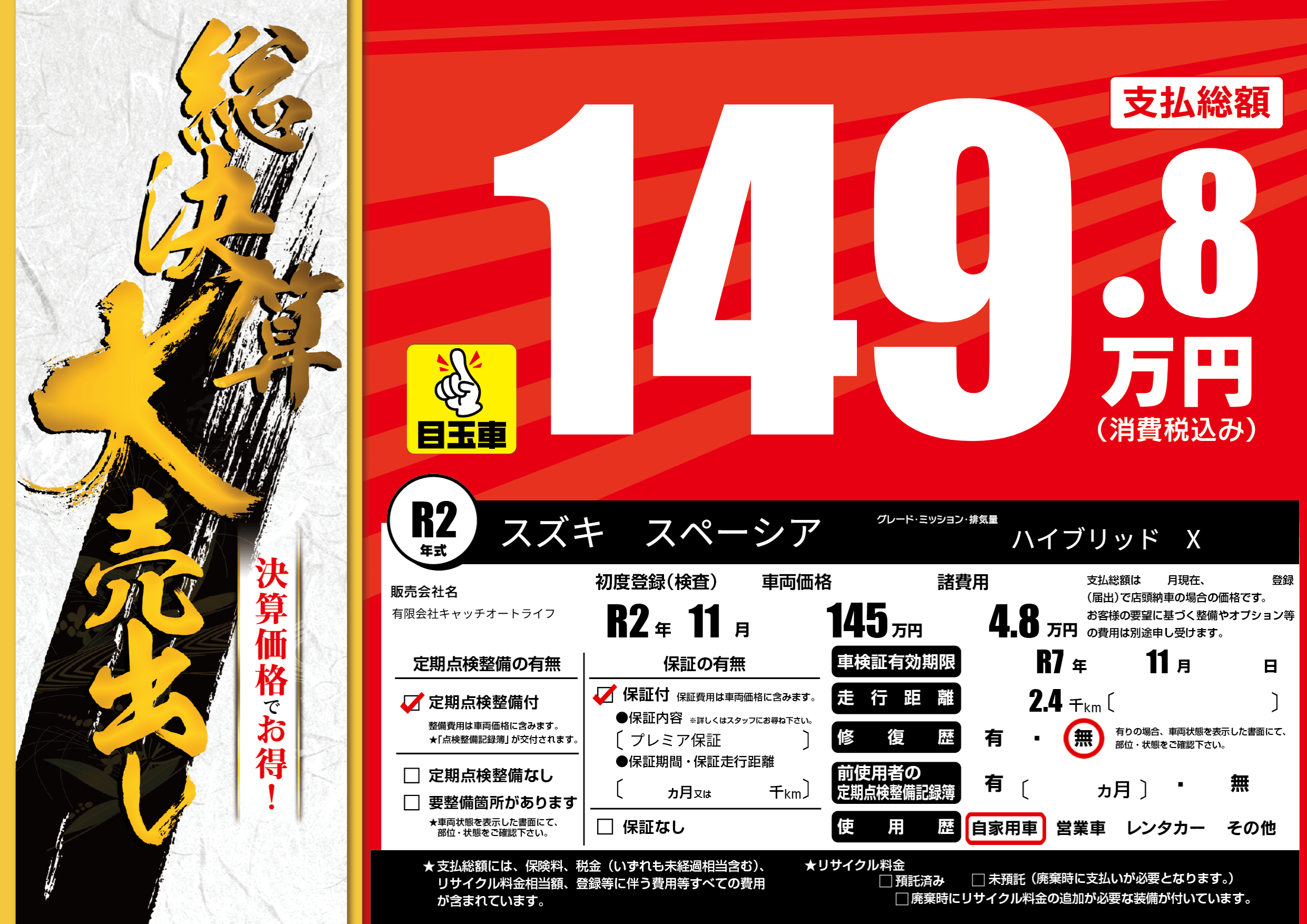 | 走行キロ | 0.2万km | 初年度登録 | R2年11月 |