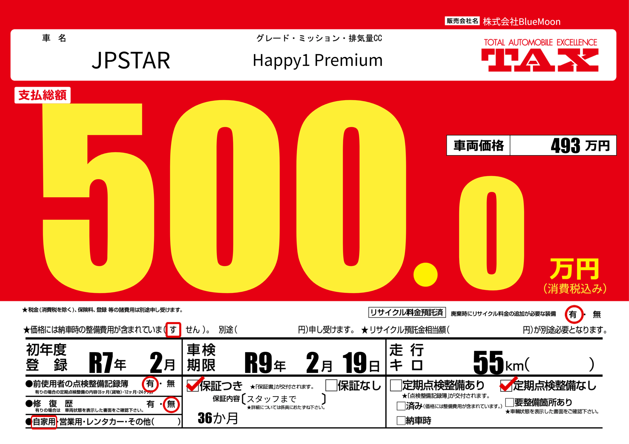 | 車名 | JPSTAR | グレード ミッション 排気量 |