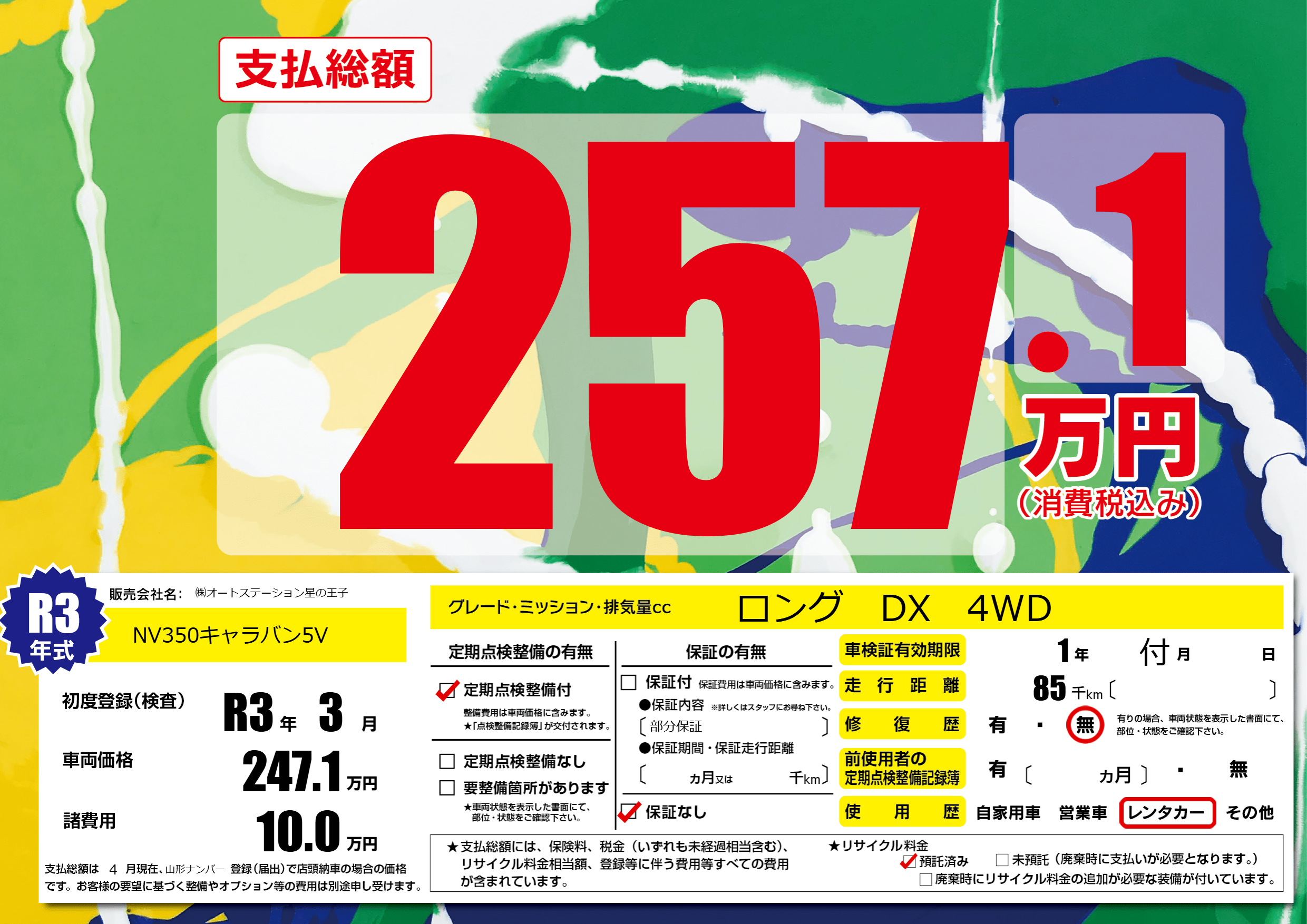 | 車名 | NV350キャラバン5V | グレード ミッション 排気量 |