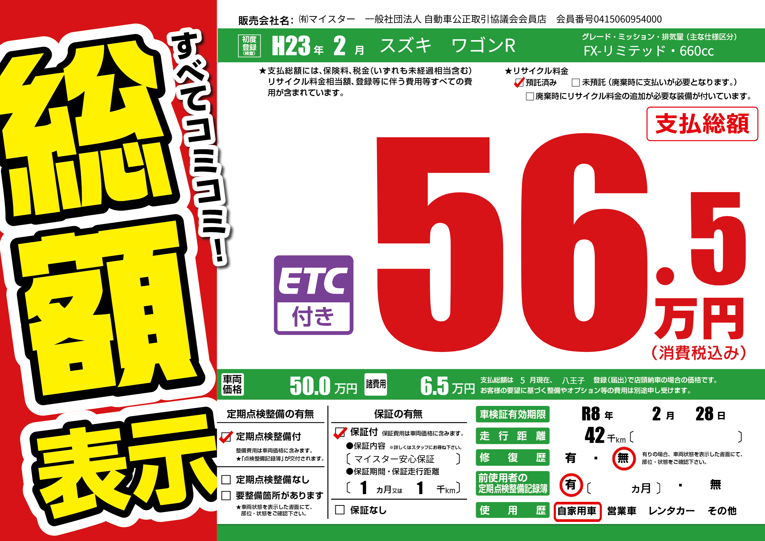 | 車検制限 | R8年 2月 28日 | ||