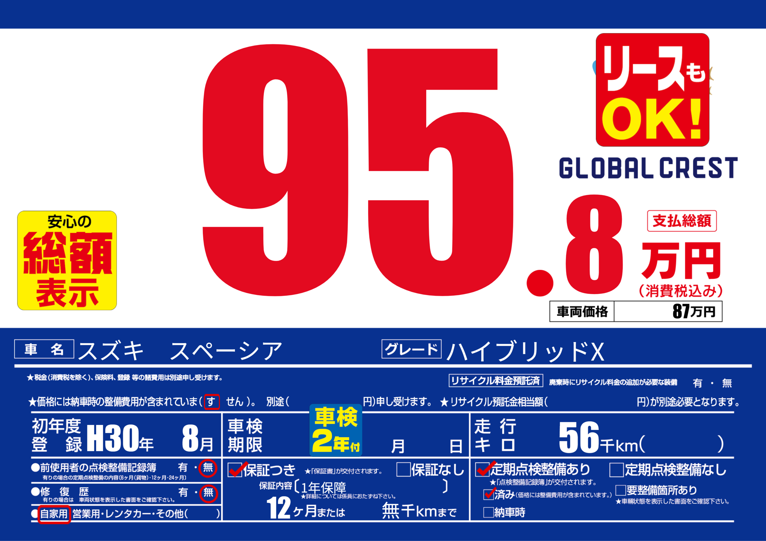 | 定期点検整備 | 定期点検整備あり 定期点検整備済み | ||