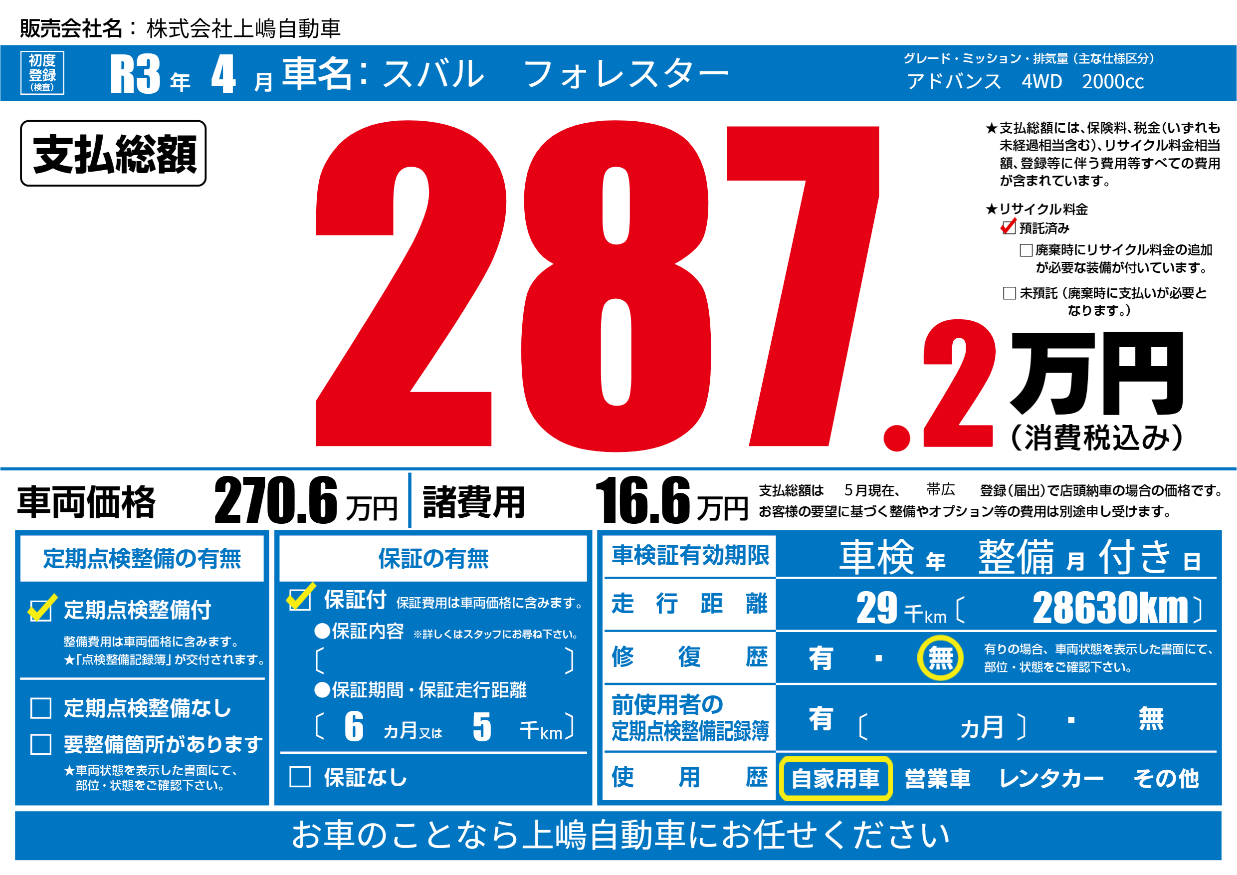 保証付き 保証内容(---) 6ヶ月または(5)千kmまで |