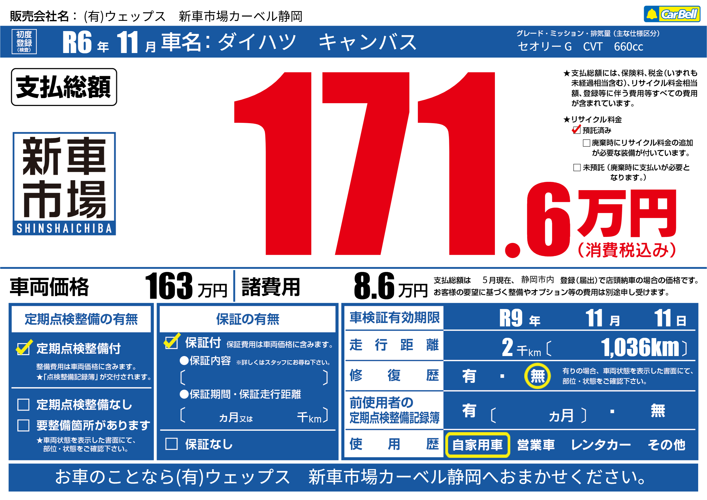 | 走行キロ | 0.2万km | 初年度登録 | R6年11月 |