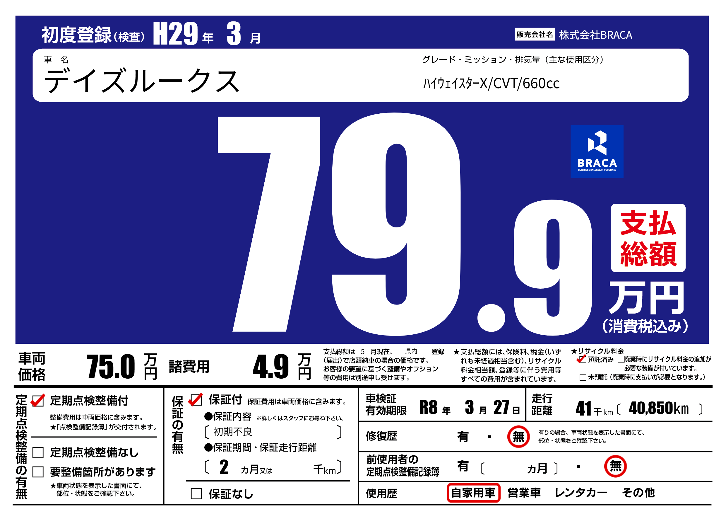 | 車検制限 | R8年 3月 27日 | ||