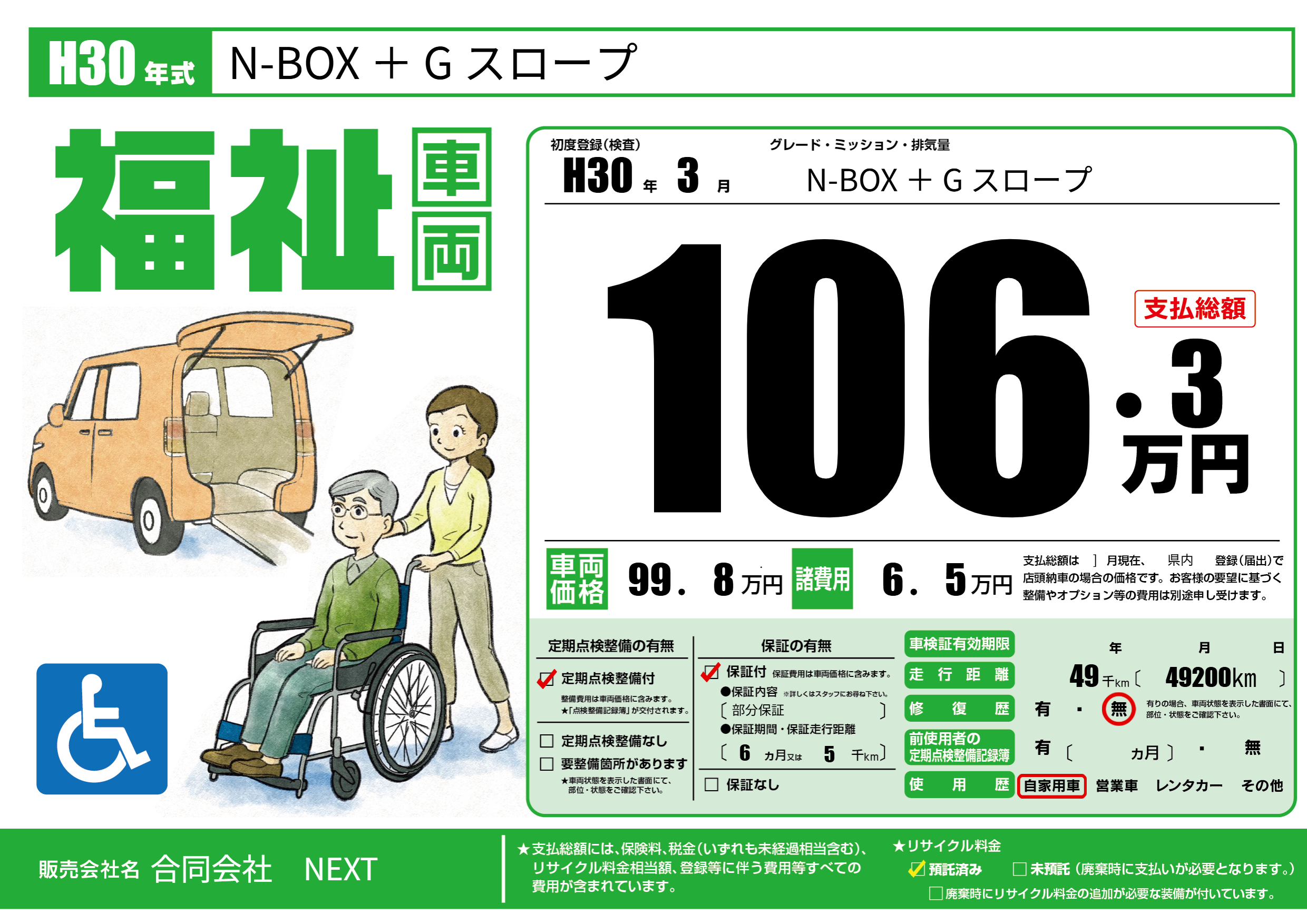 | 車名 | N-BOX + G スロープ | グレード ミッション 排気量 |