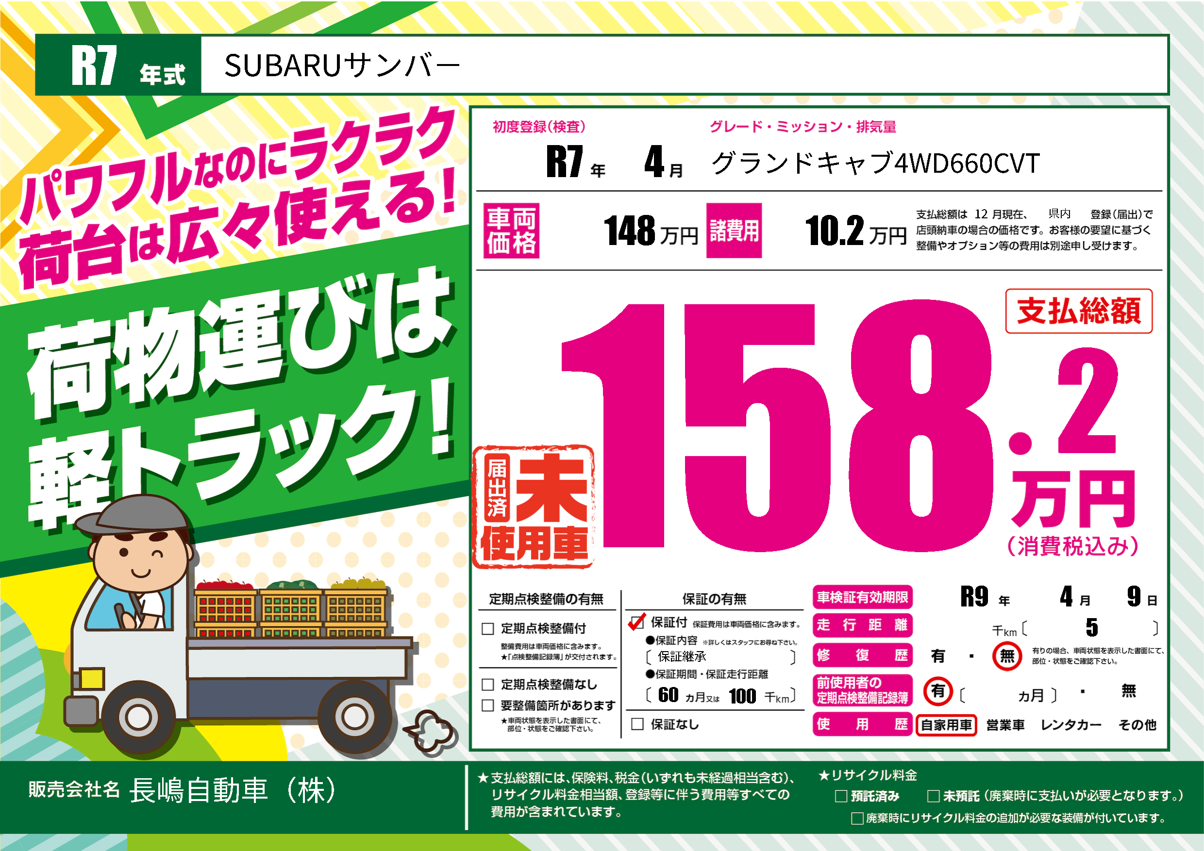 | 走行キロ | - | 初年度登録 | R7年4月 |