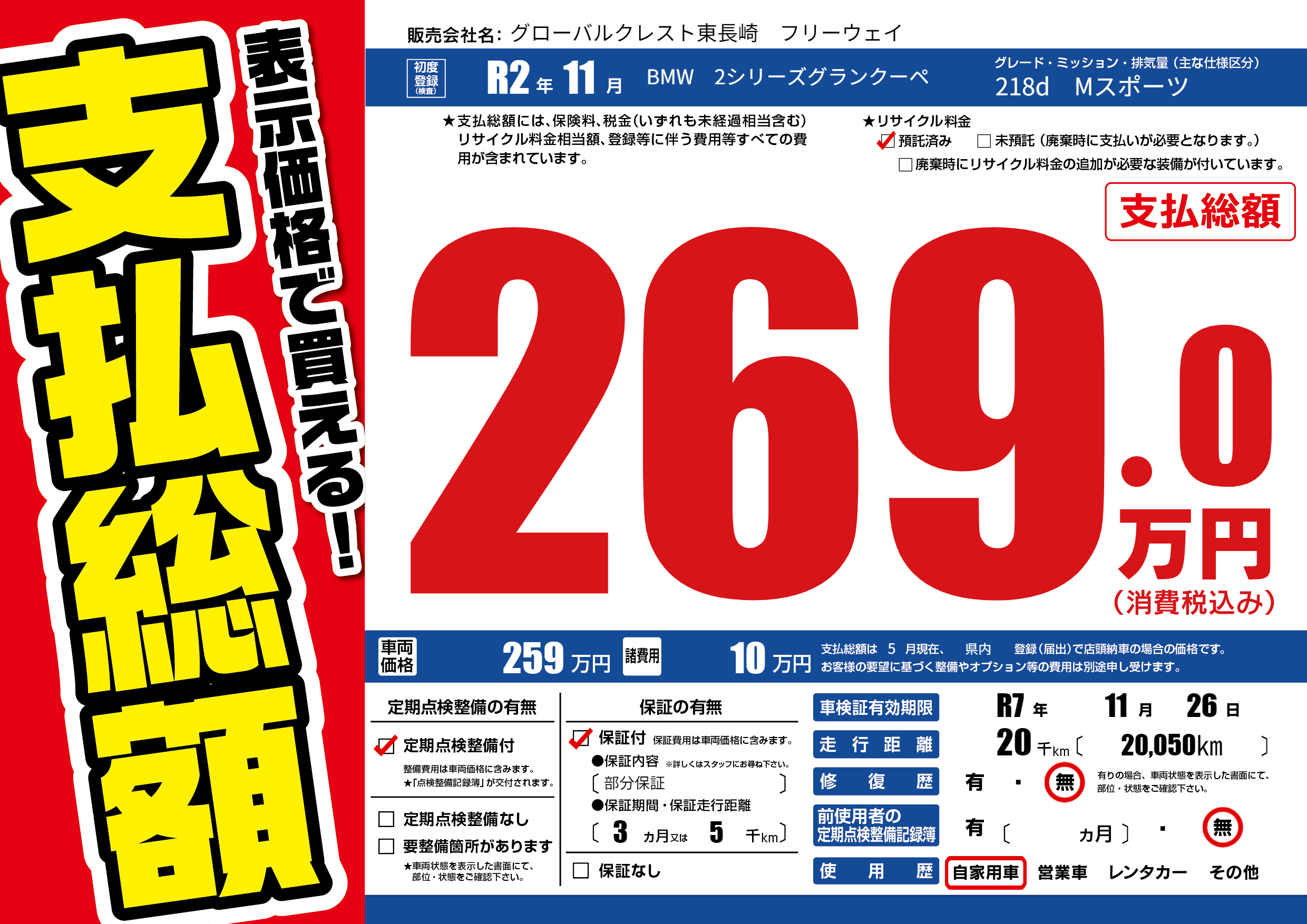 | 車検制限 | R7年 11月 26日 | ||