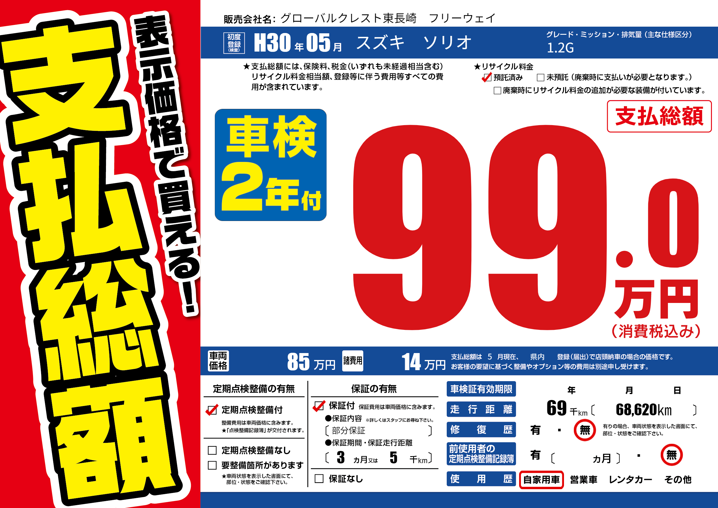 保証付き 保証内容(部分保証) 3ヶ月または(5)千kmまで |