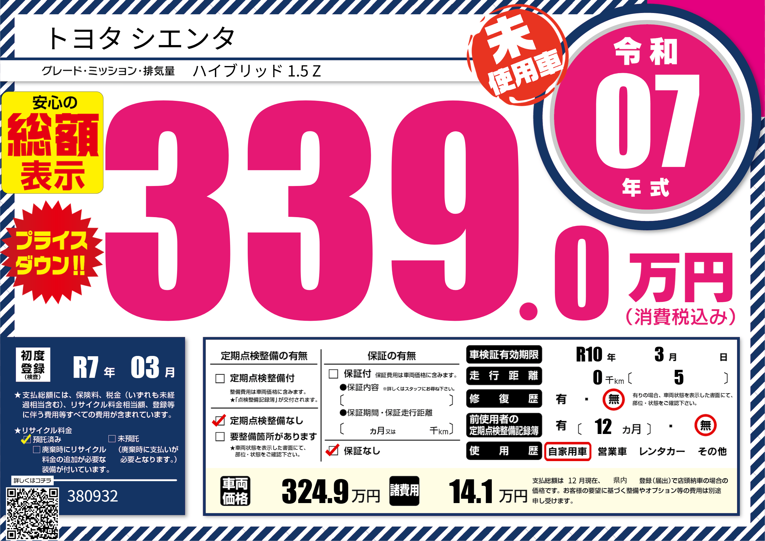 | 車検制限 | R10年 3月 - 日 | ||