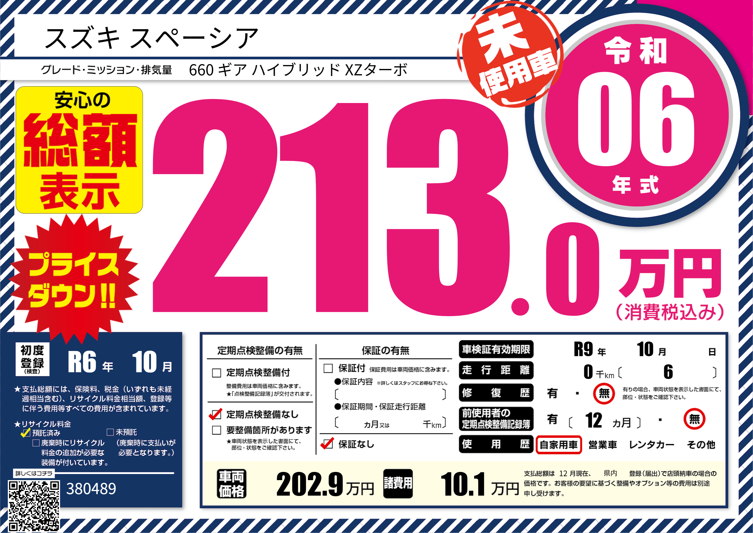 | 走行キロ | - | 初年度登録 | R6年10月 |